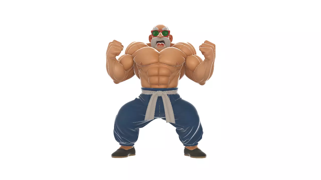 Bring the legendary martial arts teacher from the Dragon Ball universe to life with this highly detailed 3D model of Master Roshi in his muscular, powered-up form. Featuring exaggerated proportions, intense muscle definition, and his iconic sunglasses, this stylized figure perfectly captures the humor, strength, and personality of the beloved character.