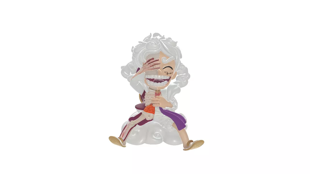 Bring home this unique and vibrant Gear 5 figurine, inspired by one of anime’s most iconic transformations. This collectible showcases a joyful pose, with exaggerated expressions and playful cloud-like details that capture the boundless energy of the character. The design features an anatomically stylized cutaway revealing internal textures like bones, muscles, and even the iconic orange shorts—blending humor, artistry, and fandom in one piece.