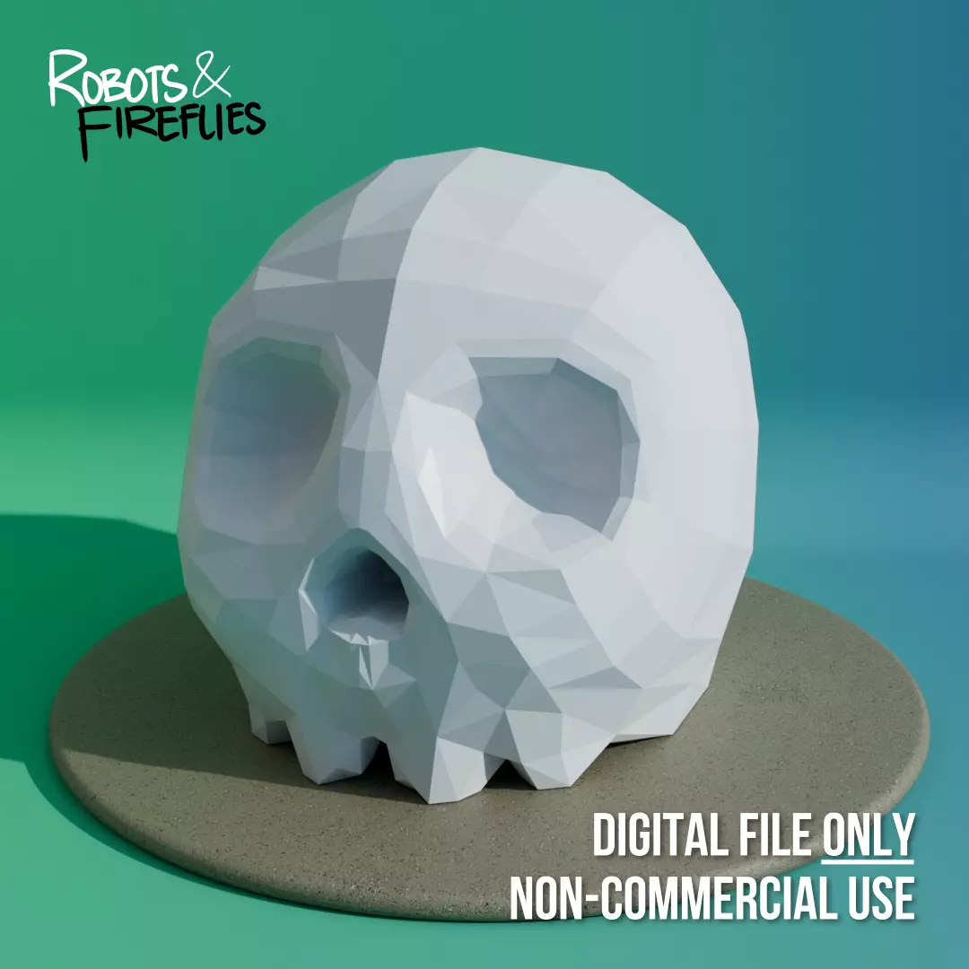 A stylized geometric skull. The model can hold your headphone/hat or stand on its own as a cool room decor addition. Can be used to decorate your gaming room, living room, office, etc.