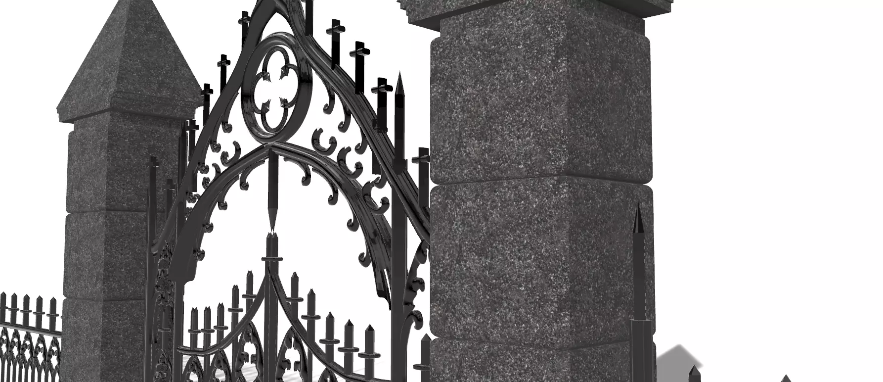 A highly detailed Gothic-style iron fence and gate featuring intricate ornamental patterns, pointed finials, and two large stone pillars with sharp pyramidal caps.Perfect for architectural visualization, historical environments, cemeteries, castles, churches, or fantasy and horror scenes.Features:Clean, optimized topologyRealistic proportions and dimensionsHigh attention to Gothic ornamentation and detailReady for rendering, animation, or game environmentsNon-destructive and easy to editIncludes:Fence sectionCentral gateTwo detailed stone pillarsIndividual and grouped elements for flexibilityIdeal for:Architectural renders, cinematic environments, Unreal/Unity scenes, and historical reconstructions.