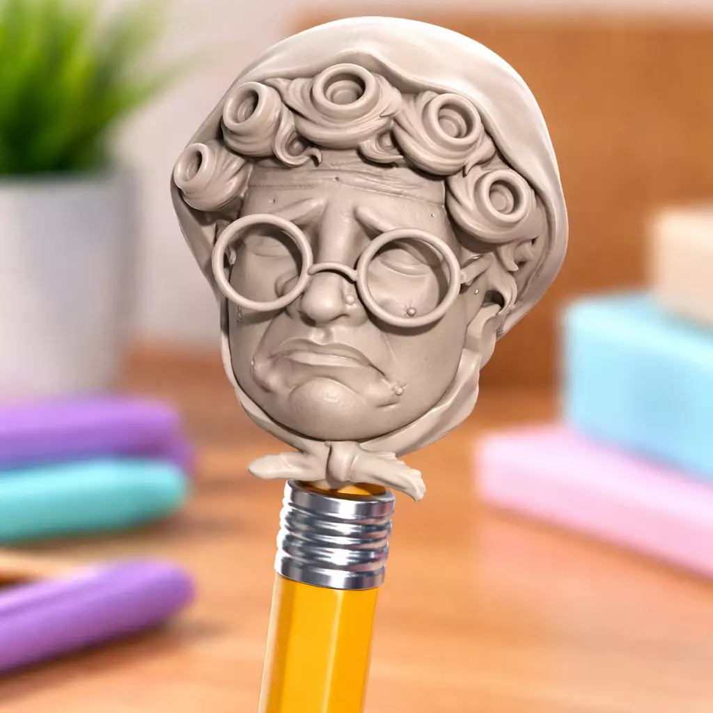 Desk decoration School or office funUnique gifts Collectible mini characters FeaturesClean, stylized sculpt (great for display & gifting)Hollow base for pen/pencil fittingOptimized for easy 3D printingWorks with PLA / Resin printingBeginner-friendly model Printing TipsRecommended layer height: 0.1–0.2 mmUse supports for best results (especially under glasses & curls)Scale slightly if needed to fit different pen sizesResin print will capture finer facial details