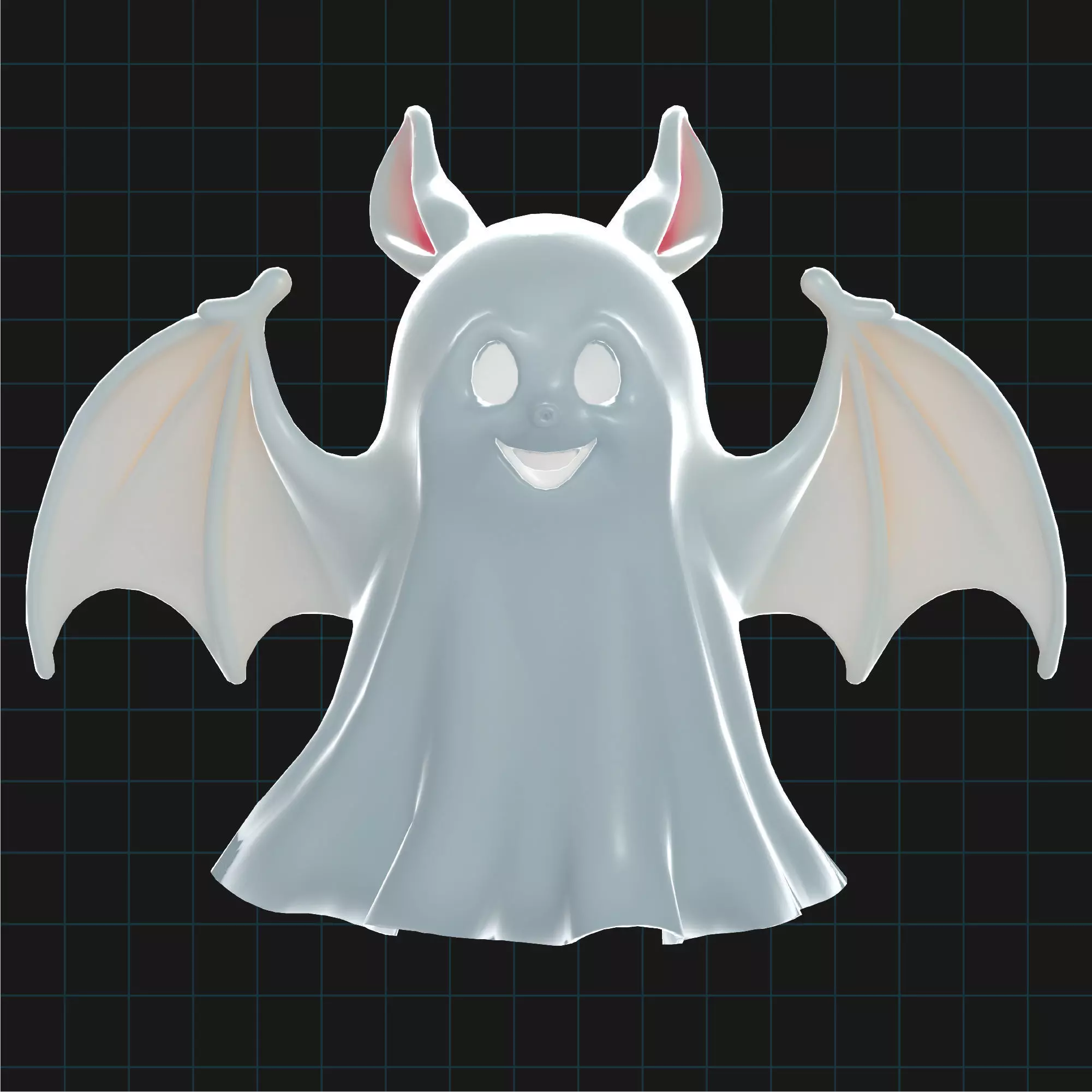 3D ghost, Halloween bat model, ghost bat STL, spooky 3D model, cartoon ghost, Halloween character, bat creature 3D, STL Halloween figure, 3D printing Halloween, ghost with wings, ghost costume 3D, flying spirit 3D model, cute Halloween ghost, AR Halloween asset, animated ghost character