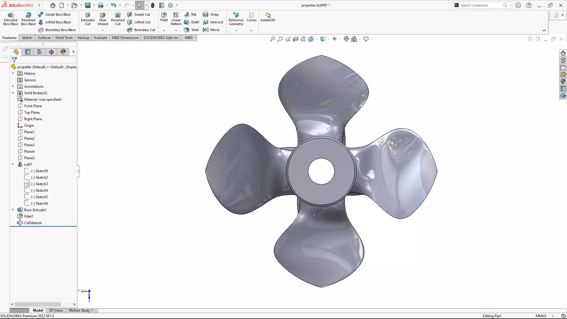 Introducing our high-quality SolidWorks propeller design, perfect for all your nautical needs. This design has been expertly crafted with the latest SolidWorks software, ensuring optimal functionality and durability. With its sleek and aerodynamic design, this propeller is perfect for a range of applications, from high-speed watercraft to large cargo ships.