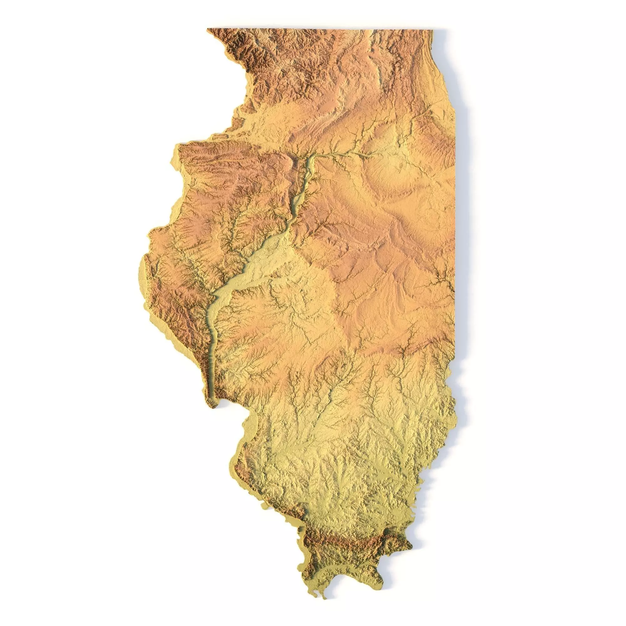 The Illinois Topographic Map STL model offers a high-resolution representation of the state’s topography and unique geographic features. This 3D model is ideal for creating physical relief maps from wood, metal, plastic, or concrete. Whether for educational purposes, landform visualization, or professional GIS projects, this model provides accurate elevation data for precise terrain modeling, compatible with 3D printers, CNC machines, and laser engravers.
