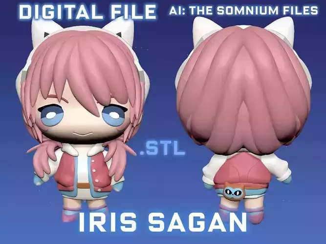 Figure of Iris/A-Set/Tesa from AITSF, split into head and body files. The head piece fits into the body piece at the neck. It is recommended to print the head at an angle and the body upside down.
