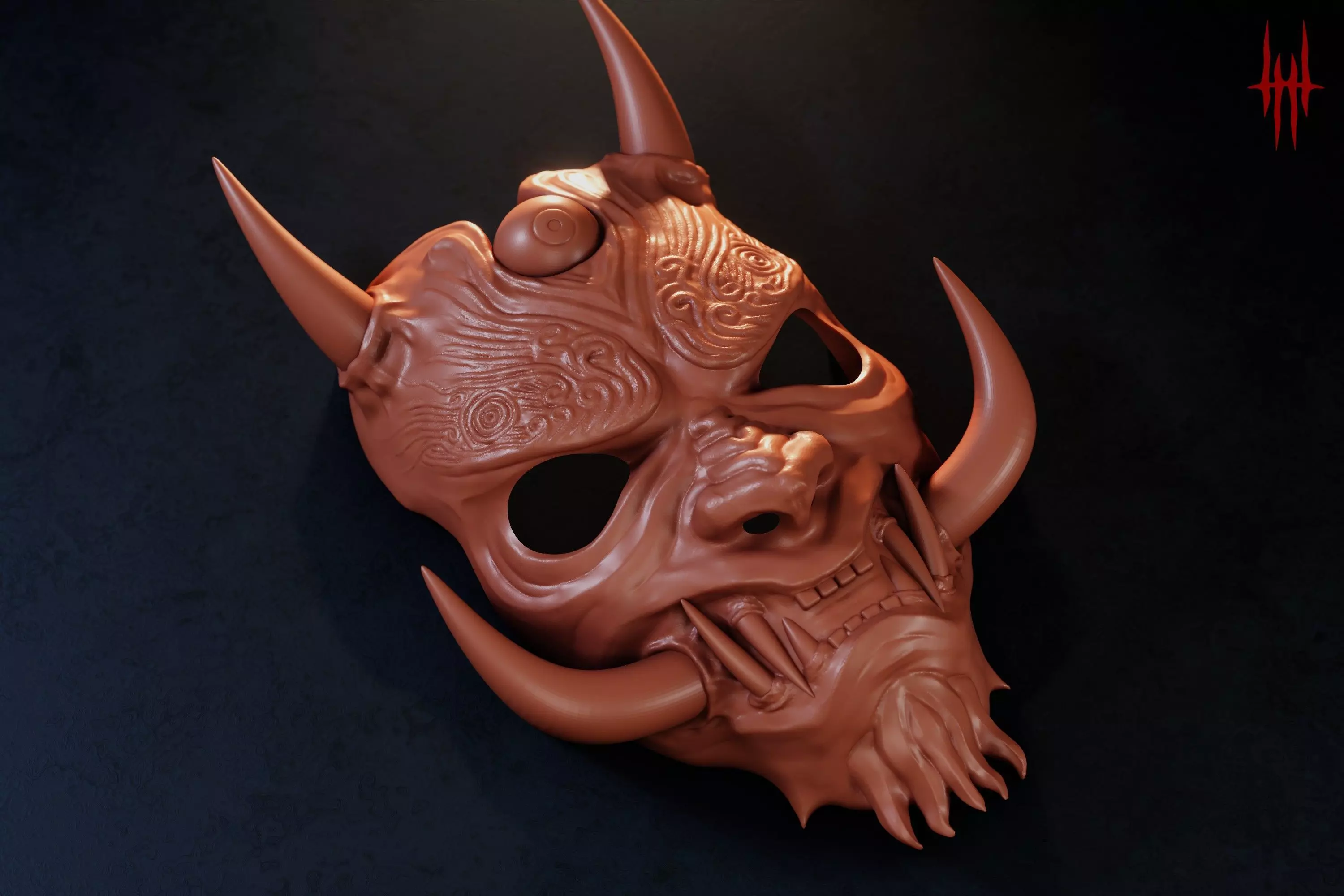 Inspired by Oni, this mask is a unique design sculpted in blender, the mask can be weared or used as you likeThe mask comes in two versions: with eyes and without eyes for better comfort.