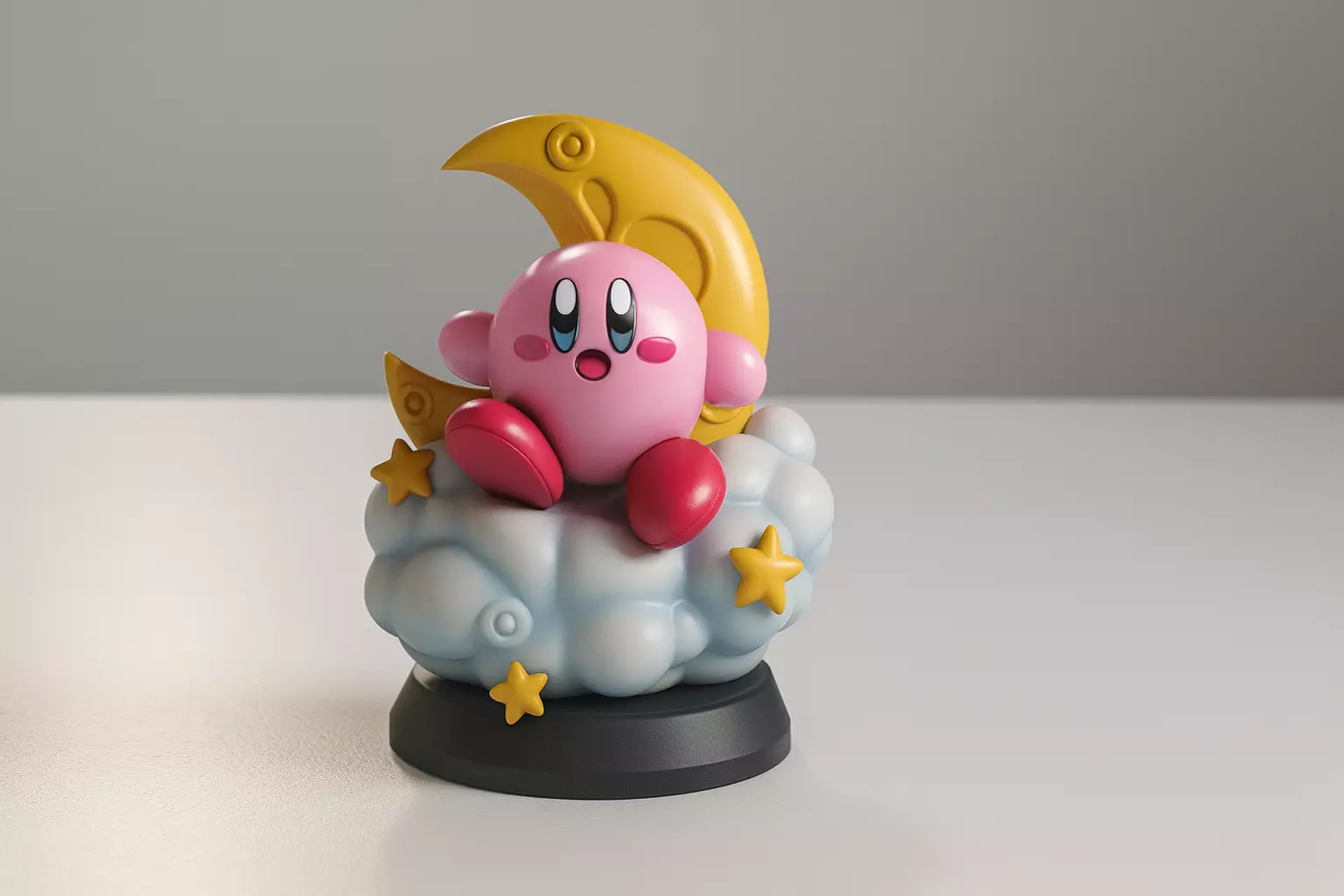 Bring the magic of Dream Land into your collection with this beautifully detailed Kirby figurine. This model features Kirby joyfully sitting on a fluffy cloud, surrounded by golden stars, with a crescent moon rising behind him. Perfect as a collectible display piece, a desk ornament, or a gift for fans of the iconic character, this design captures the charm and whimsical style that makes Kirby so beloved.