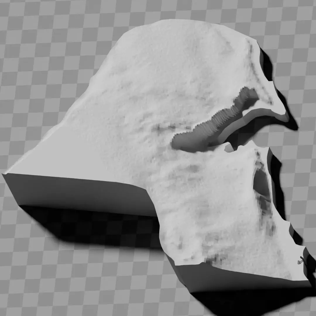 a simple 'prism' [flat-surfaced cutout of the country's boundaries with no topology features added]