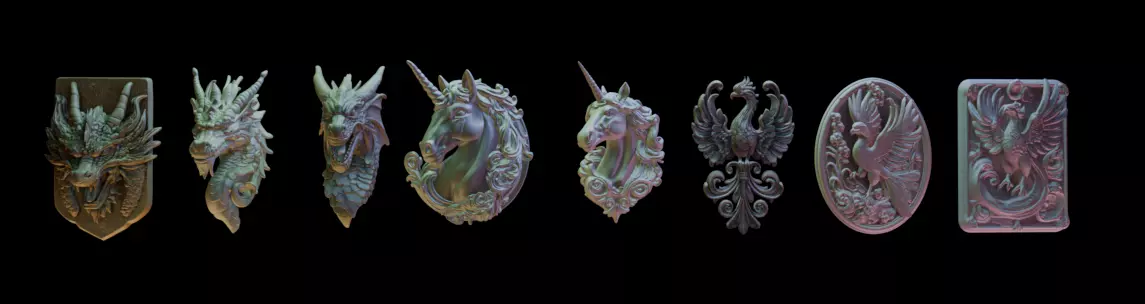 A collection of eight fridge magnets. These fridge magnets feature a variety of mythical animals, perfect for games, animations, or 3D printing and sticking to your fridge.