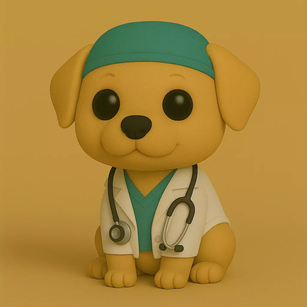 Colección Veterinario Pop STL — una serie exclusiva de figuras 3D en estilo chibi/Funko Pop, diseñadas con un toque tierno y profesional.Cada modelo representa a un animal vestido como veterinario, con su bata blanca, gorrito quirúrgico turquesa y estetoscopio, sobre un fondo cálido uniforme que resalta sus detalles suaves y expresivos.