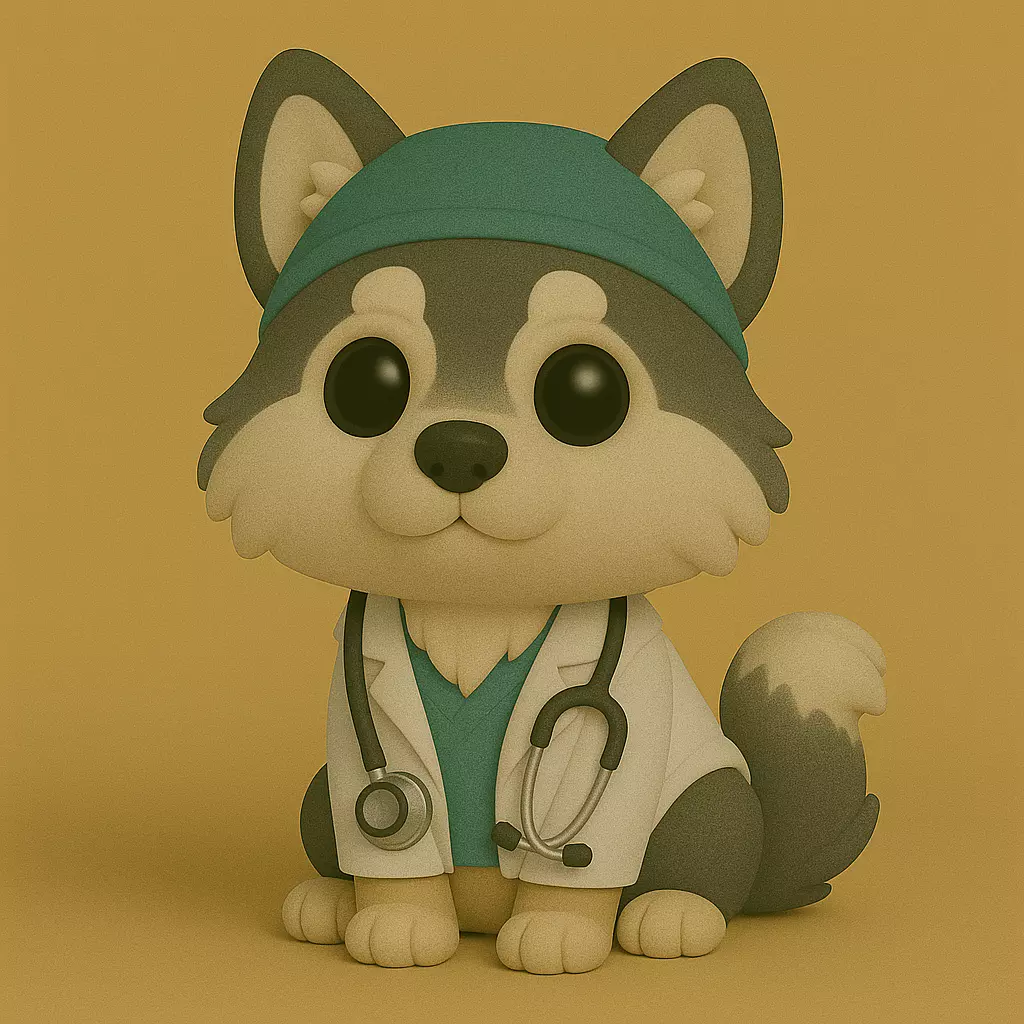 Colección Veterinario Pop STL — una serie exclusiva de figuras 3D en estilo chibi/Funko Pop, diseñadas con un toque tierno y profesional.Cada modelo representa a un animal vestido como veterinario, con su bata blanca, gorrito quirúrgico turquesa y estetoscopio, sobre un fondo cálido uniforme que resalta sus detalles suaves y expresivos.