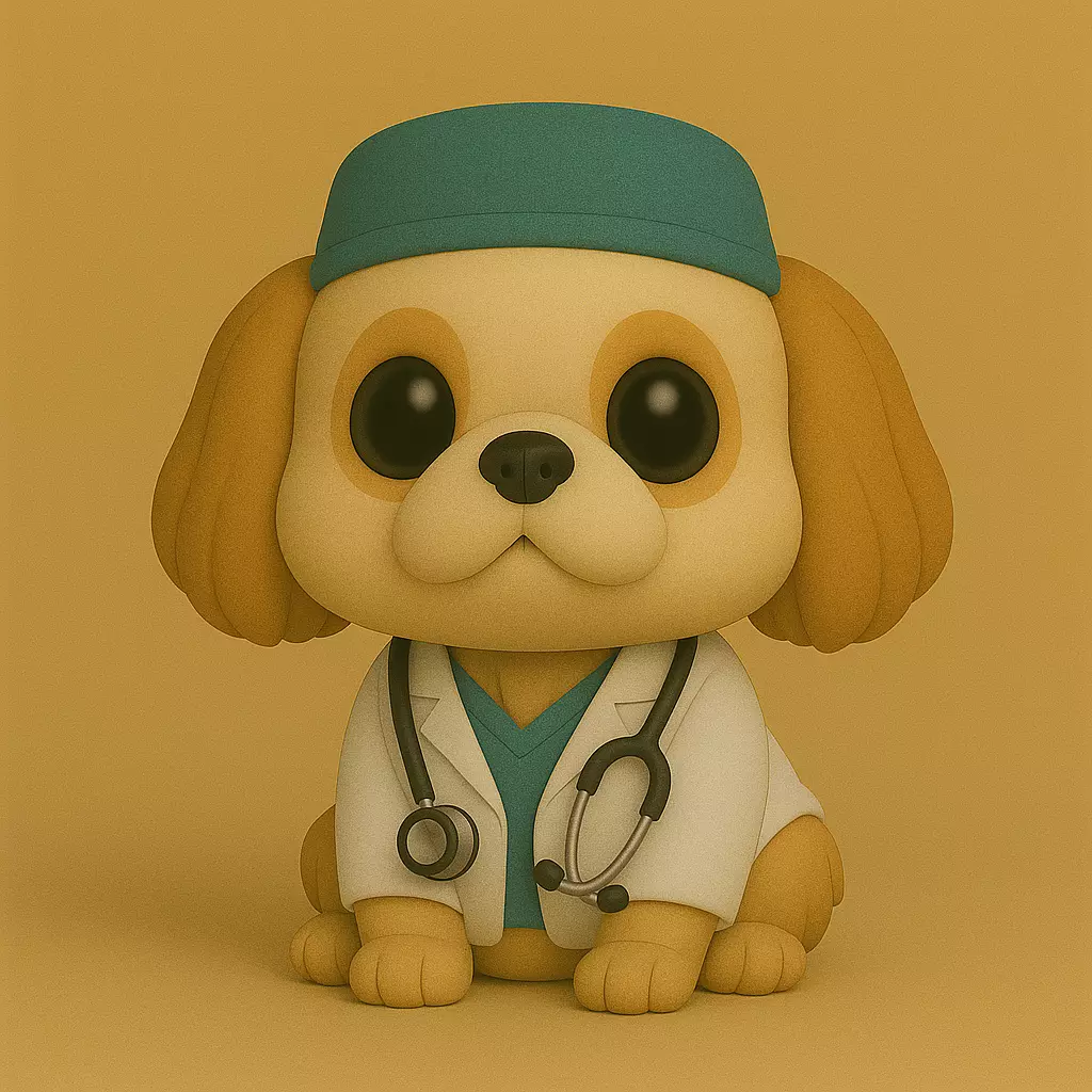 Colección Veterinario Pop STL — una serie exclusiva de figuras 3D en estilo chibi/Funko Pop, diseñadas con un toque tierno y profesional.Cada modelo representa a un animal vestido como veterinario, con su bata blanca, gorrito quirúrgico turquesa y estetoscopio, sobre un fondo cálido uniforme que resalta sus detalles suaves y expresivos.