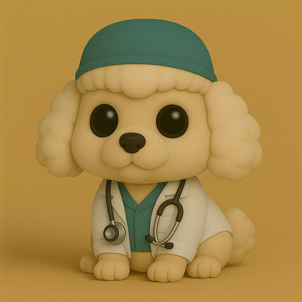 Colección Veterinario Pop STL — una serie exclusiva de figuras 3D en estilo chibi/Funko Pop, diseñadas con un toque tierno y profesional.Cada modelo representa a un animal vestido como veterinario, con su bata blanca, gorrito quirúrgico turquesa y estetoscopio, sobre un fondo cálido uniforme que resalta sus detalles suaves y expresivos.