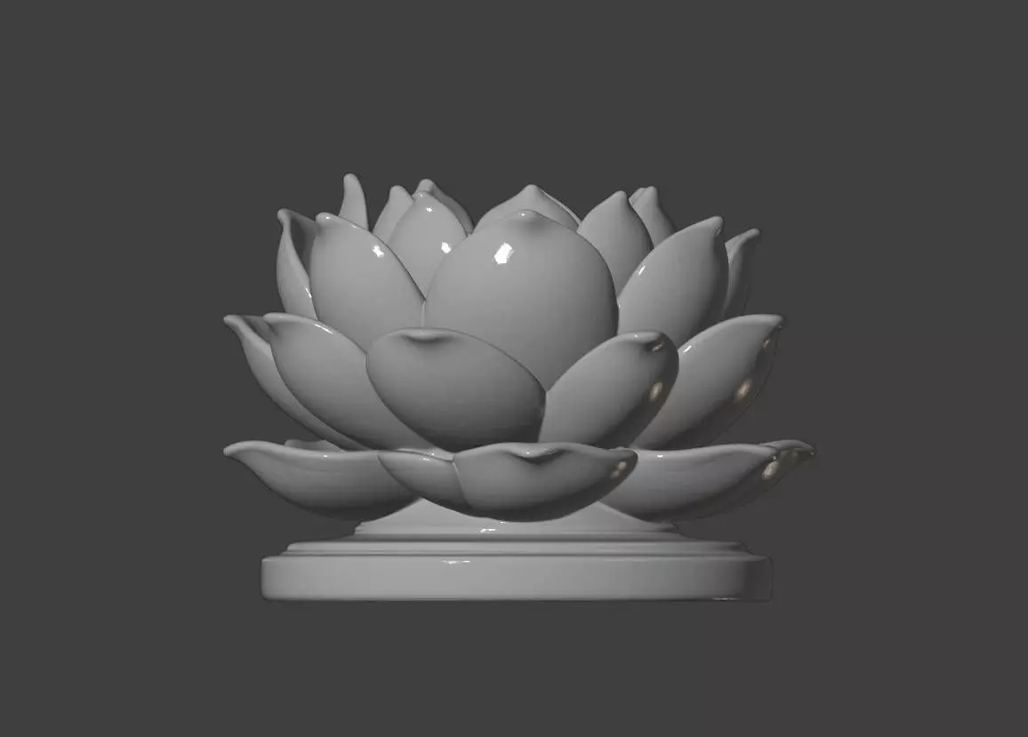 This lotus seat presents a blooming lotus posture with layered petals transitioning from pure white inner layers to soft pink outer petals. Each petal displays natural vein textures with smooth, porcelain-like warmth on the surface. The flower center showcases lotus pod detail structures, adding realistic appeal. The bottom includes a simple white circular base ensuring stable placement. The overall piece radiates tranquil and peaceful energy, symbolizing purity and wisdom. This design suits meditation spaces, tea room decoration, Buddhist shrine settings, or meditation props. Recommended for high-resolution resin printing with optional ceramic texture post-processing.