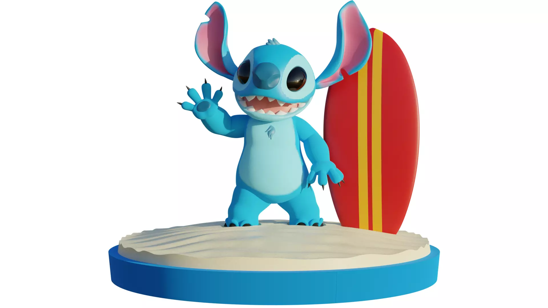 Description:Bring a touch of tropical magic to your home with this adorable 3D model of Stitch, the beloved cartoon character known for his adventures in Lilo & Stitch. This charming model features Stitch waving and smiling directly at you, next to his surfboard, set on a detailed sand base complete with custom fittings for easy assembly.