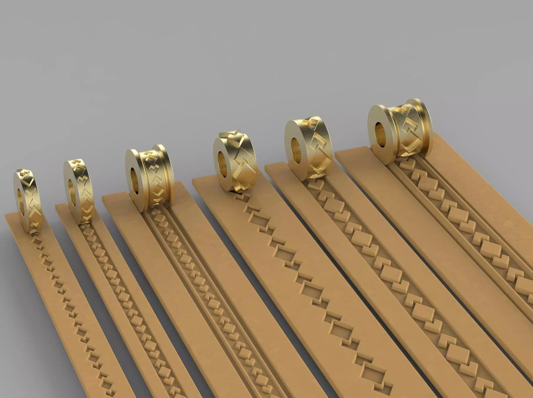 What will you get?2 ZIP file containing the following, 6 files Stl + one zip (holder):1/. STL - A_3mm pattern width, inner diameter 6mm, external diameter 14mm, width 3.0mm. The height of the part is 0.5 mm.2/. STL - b_3mm pattern width, inner diameter 6mm, external diameter 14mm, width 3.0mm. The height of the part is 0.5 mm.3/. STL - b_5mm with a border of the pattern width, inner diameter 6mm, external diameter 14mm, width 7.0mm. The height of the part is 1.5 mm.4/. STL - A_6mm pattern width, inner diameter 6mm, external diameter 14mm, width 6.00mm. The height of the part is 1.0 mm.5/. STL - b_6mm pattern width, inner diameter 6mm, external diameter 14mm, width 6.00mm. The height of the part is 1.0 mm.6/. STL - b_6mm with a border of the pattern width, inner diameter 8mm, external diameter 14mm, width 10.0mm. The height of the part is 2.0 mm.7/. Holder for rollers in formats - STL, AI, EPS, DXF, PDF can be printed on a 3D printer or cut out of a metal sheet.