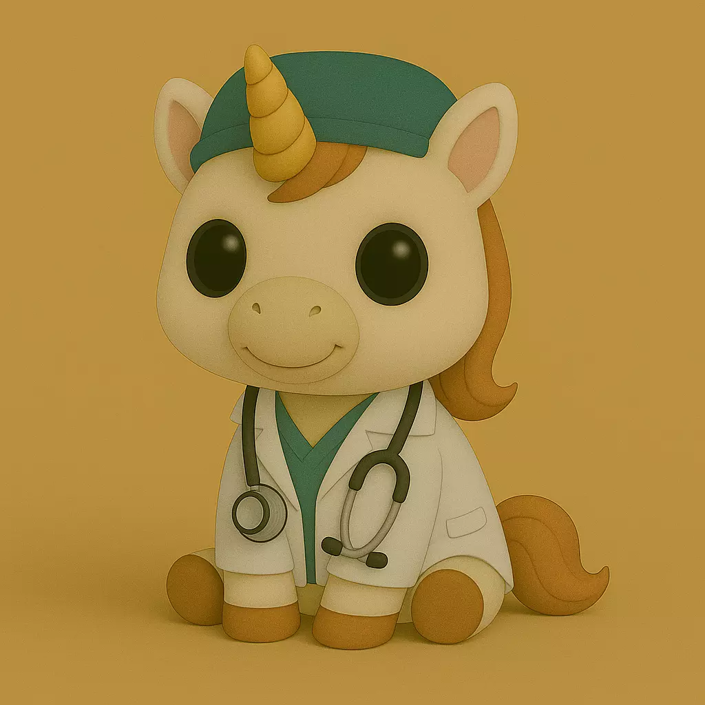 Colección Veterinario Pop STL — una serie exclusiva de figuras 3D en estilo chibi/Funko Pop, diseñadas con un toque tierno y profesional.Cada modelo representa a un animal vestido como veterinario, con su bata blanca, gorrito quirúrgico turquesa y estetoscopio, sobre un fondo cálido uniforme que resalta sus detalles suaves y expresivos.