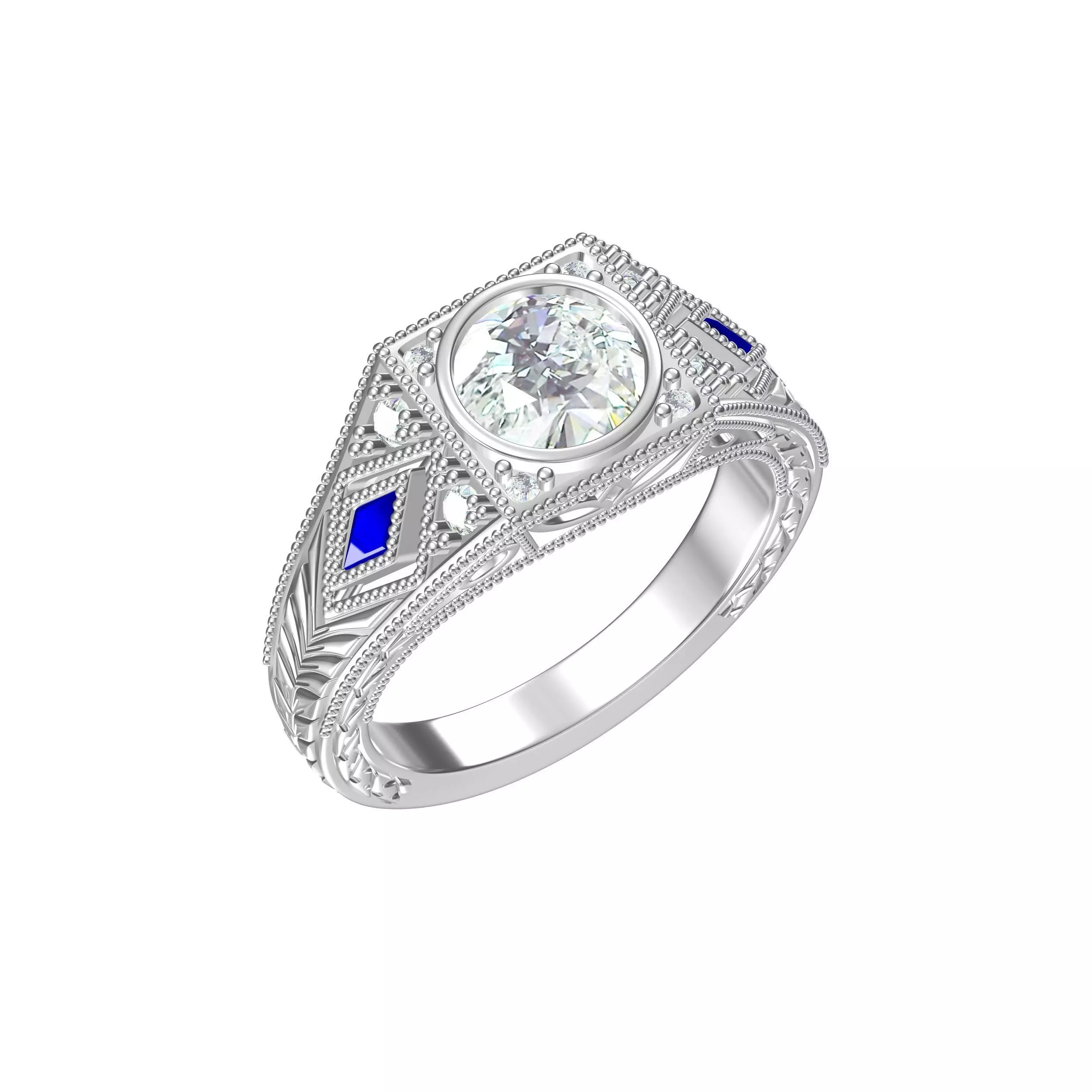 Bezal Diamond Solitaire Art Deco Engagement Ring