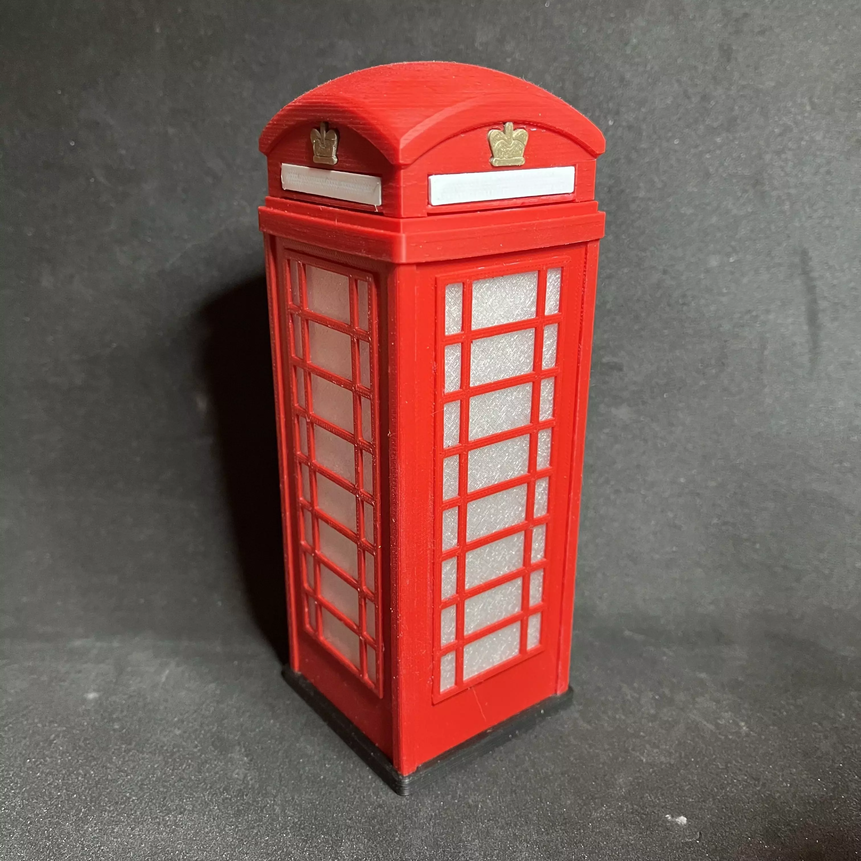 I originally designed this cute little box as the lamp unit for a Telephone Box Wave Lamp (wave your hand over the sensor and it lights up), but I never could get the thing to work, and keep working, to my satisfaction. Next year I intend to put some serious effort into electronics-related projects, but for now I wanted to get this out into the world. I therefore re-designed it very slightly, turning it into a nice gift and jewellery box!