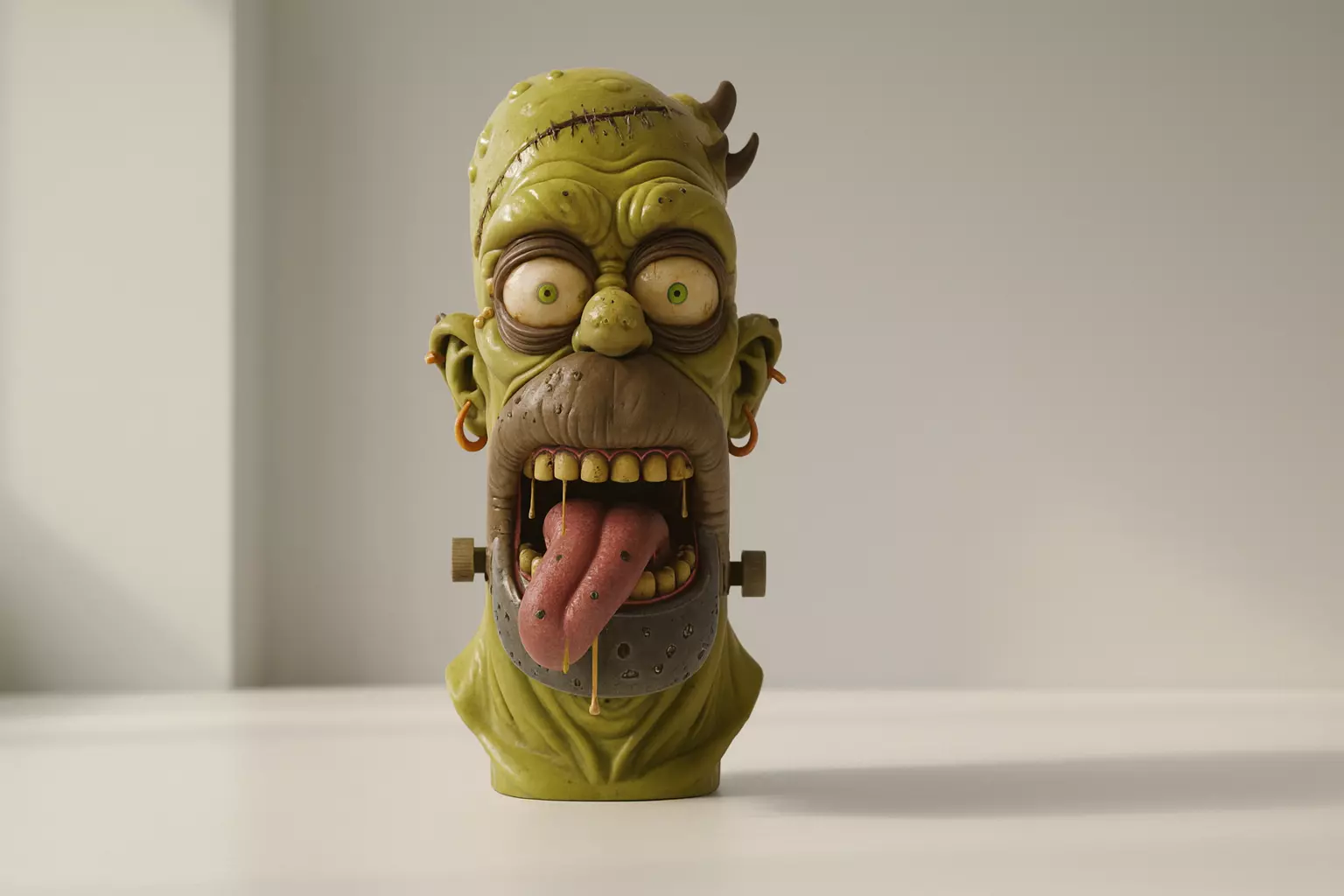 This Zombie Simpson Frankenstein Bust is a terrifyingly funny mashup of horror and cartoon parody. Inspired by the iconic Simpson style, this bust transforms the familiar face into a grotesque zombie monster with bulging eyes, rotten stitches, monstrous tongue, and creepy details that make it both hilarious and horrifying.