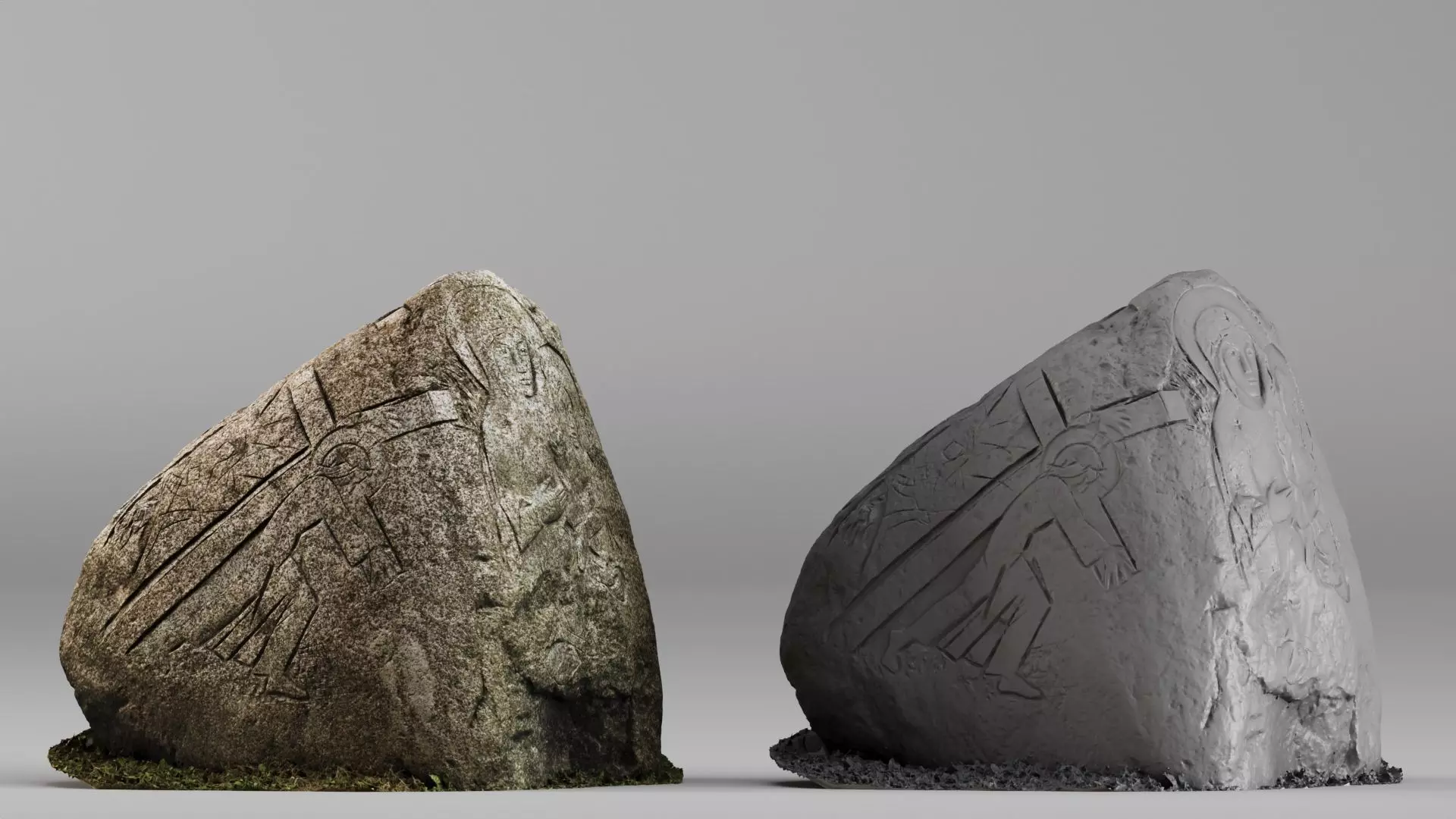 Raw scan geometry No automatic repairs Original stone relief preserved Professional processing required High-detail capture Scalable after optimization Accurate material reference Archive-grade quality