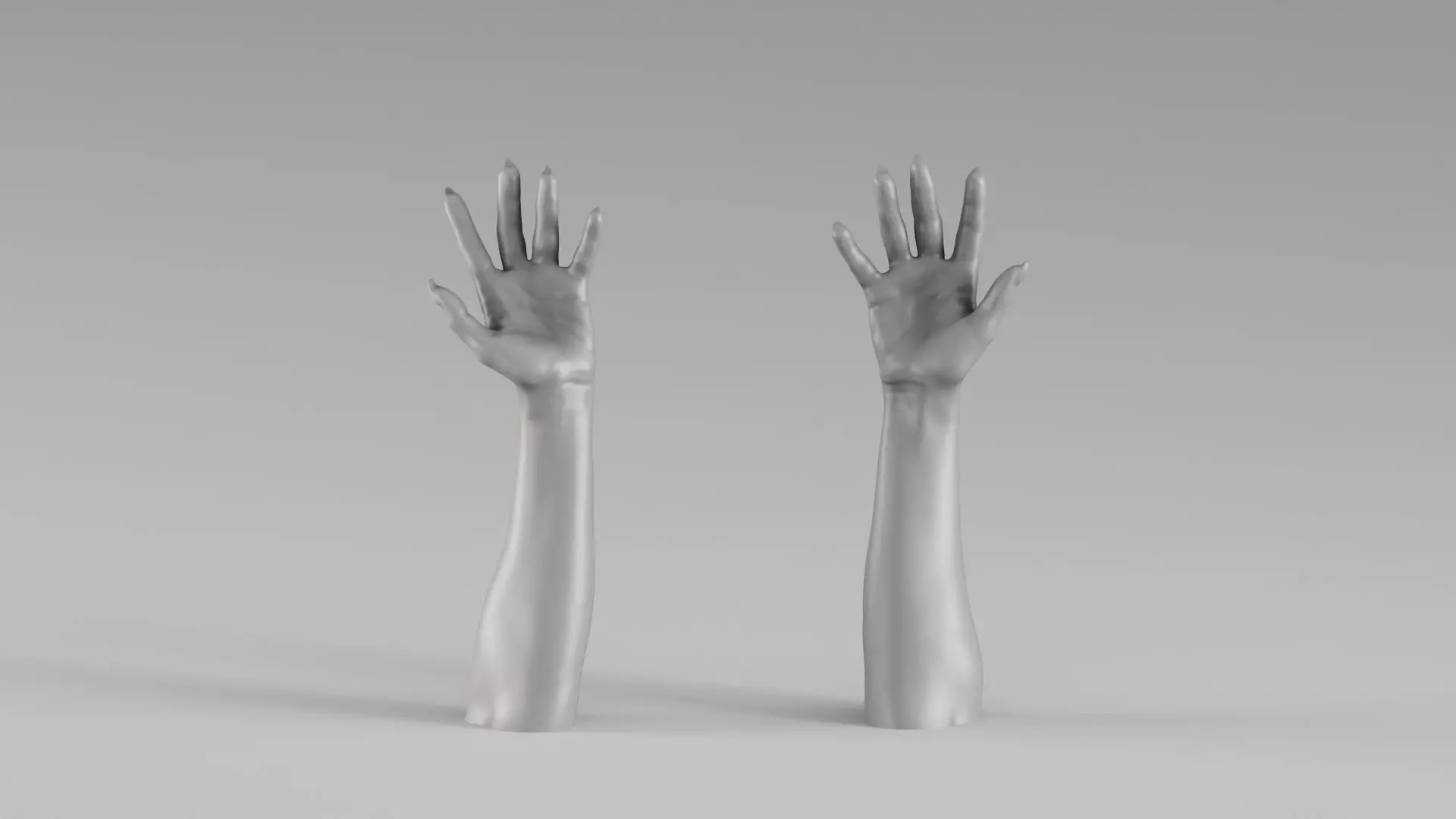 This model is based on a high-resolution 3D scan of real human hands and forearms and can be prepared for physical fabrication.