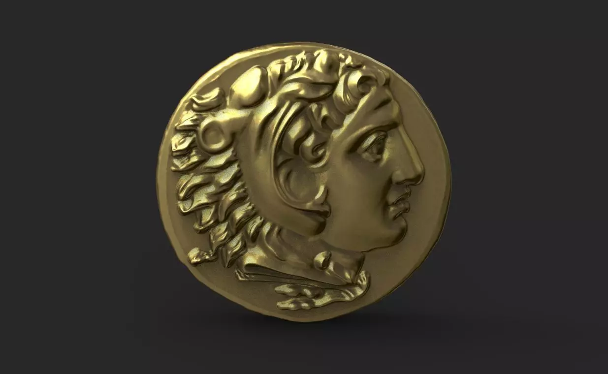 19mm/5mmThis 3D printable model is a faithful recreation of the obverse of a Pergamon tetradrachm, depicting Alexander the Great in the guise of the mythical hero Heracles. The artist has meticulously captured the intricate details of the original Hellenistic coin, bringing it to life in a three-dimensional form.Join the Facebook group: “Print Your Museum – 3D Printed Archaeology” https://www.facebook.com/groups/862838313343526