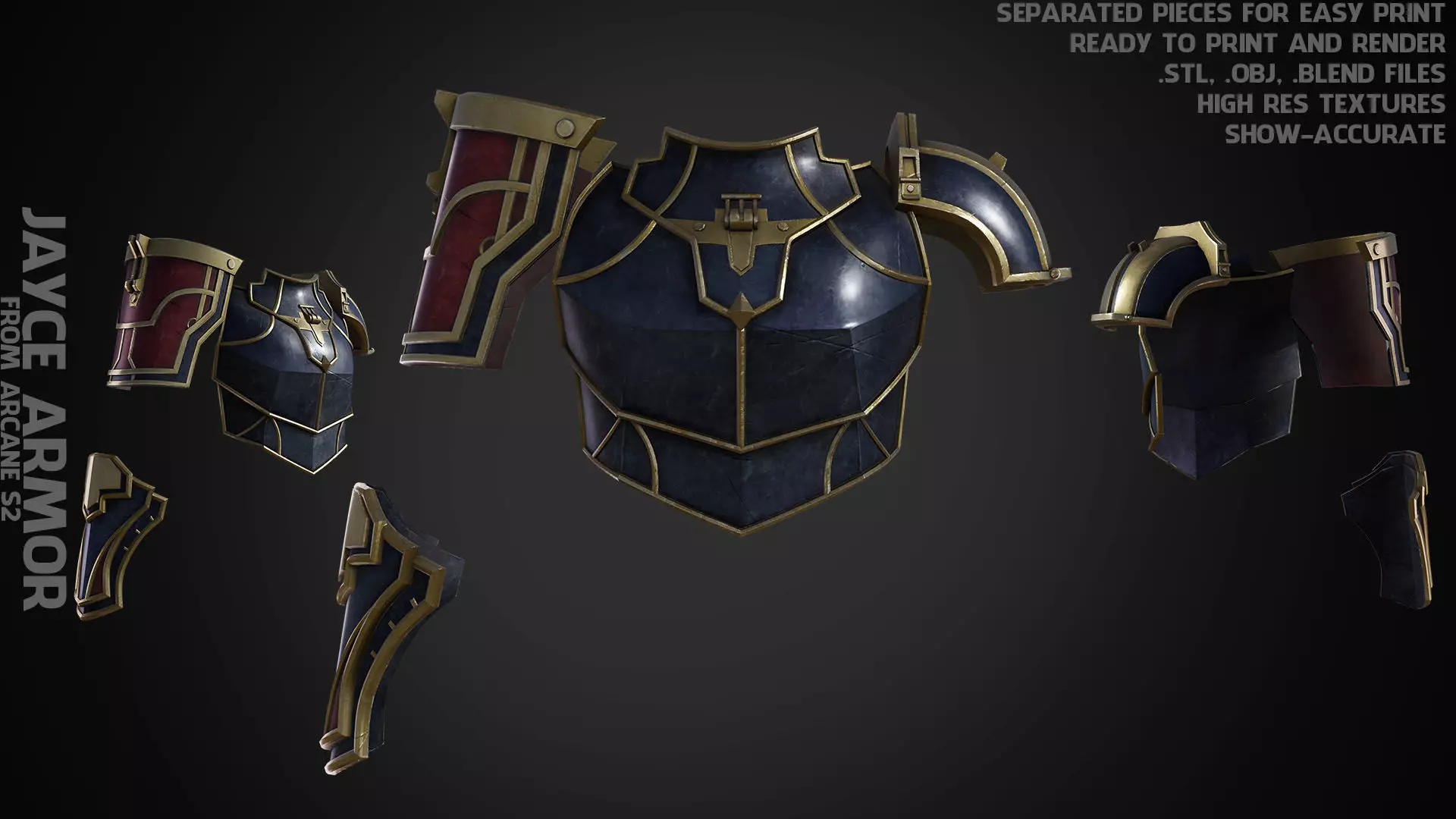 - High poly Stl of the Armor divided into multiple pieces for easy printing (images and video above)