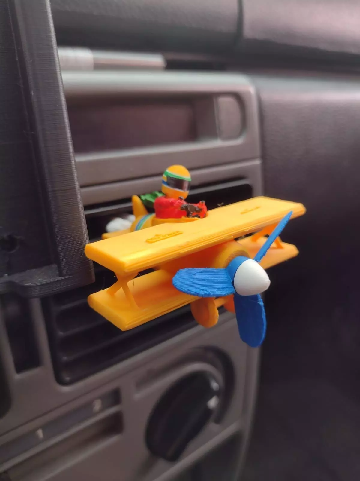 Bring the spirit of racing legend Ayrton Senna to the skies with this unique 3D printable mini airplane. This fun and collectible model features a stylized pilot inspired by the iconic Brazilian Formula 1 champion, sitting in a classic biplane with a rotating propeller.