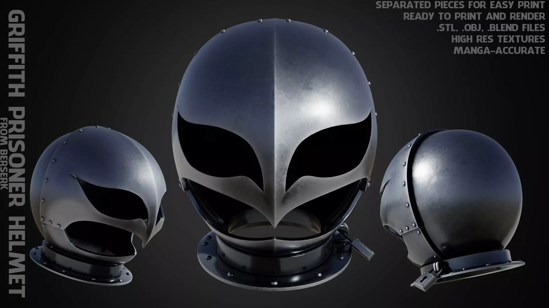 Griffith Prisoner Helmet from Berserk ready to print and render real-life scale (anime-accurate)