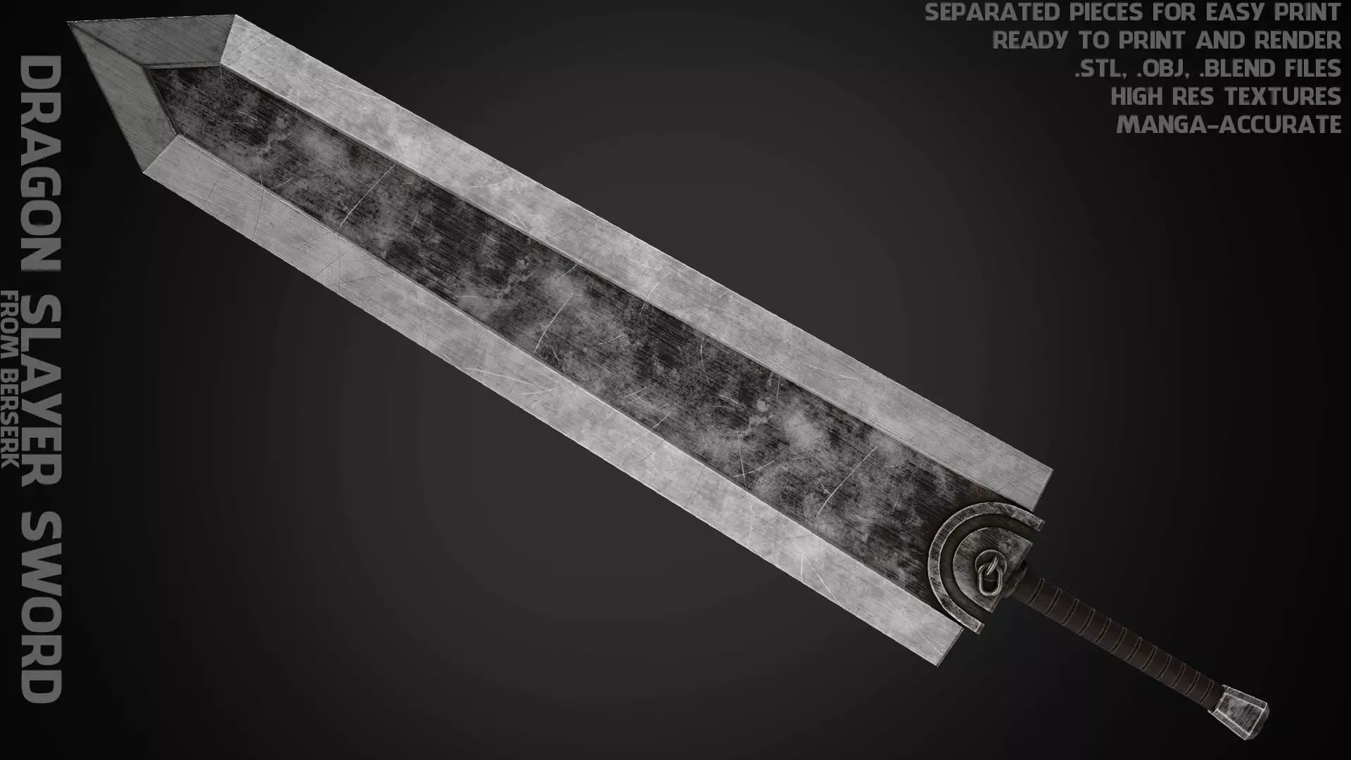 Guts Dragon Slayer Sword from Berserk Manga ready to print and render (manga-accurate) real size