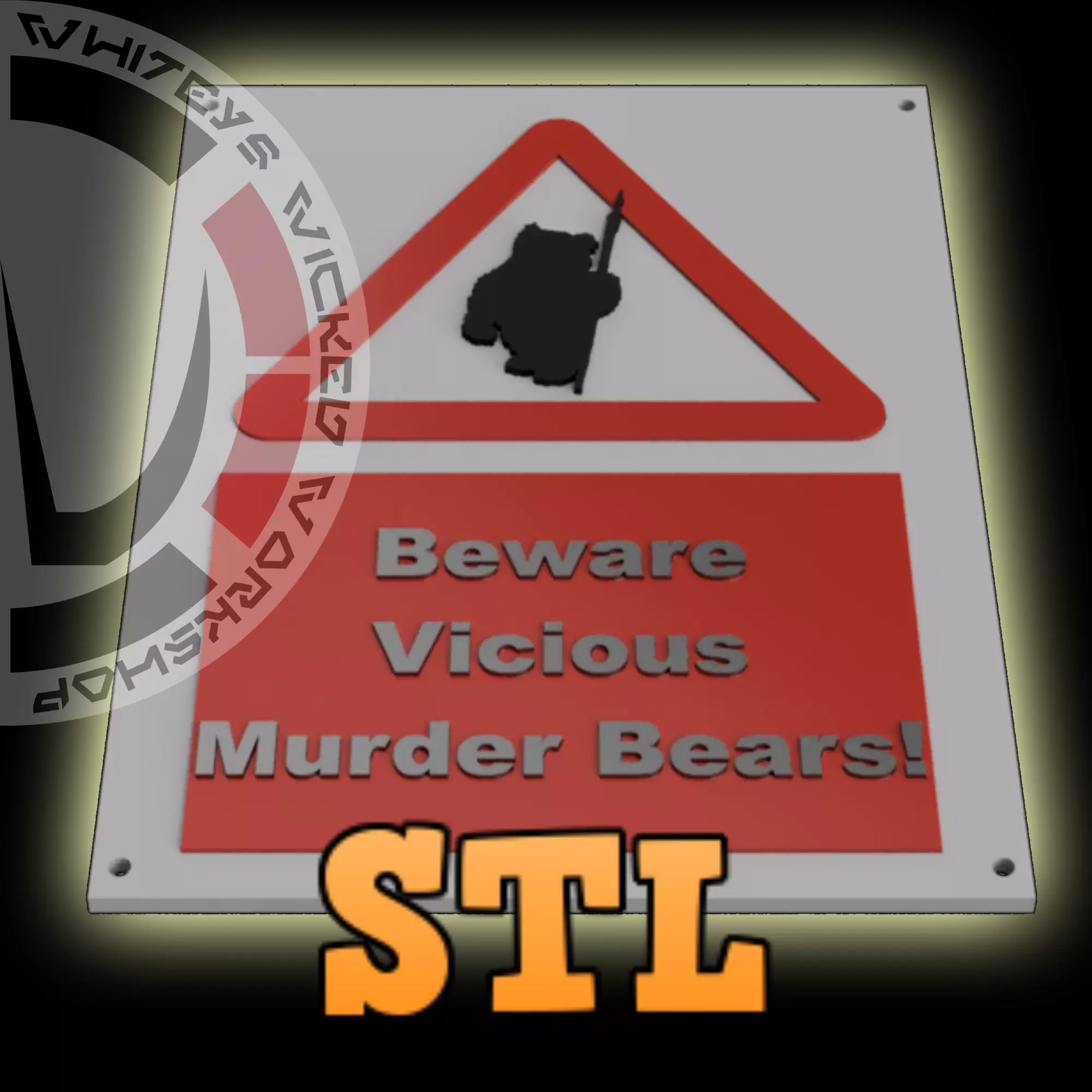 Beware Vicious Murder Bears Ewok Sign 3D Print STL File Inspired by Star WarsSolid and Separate files included.