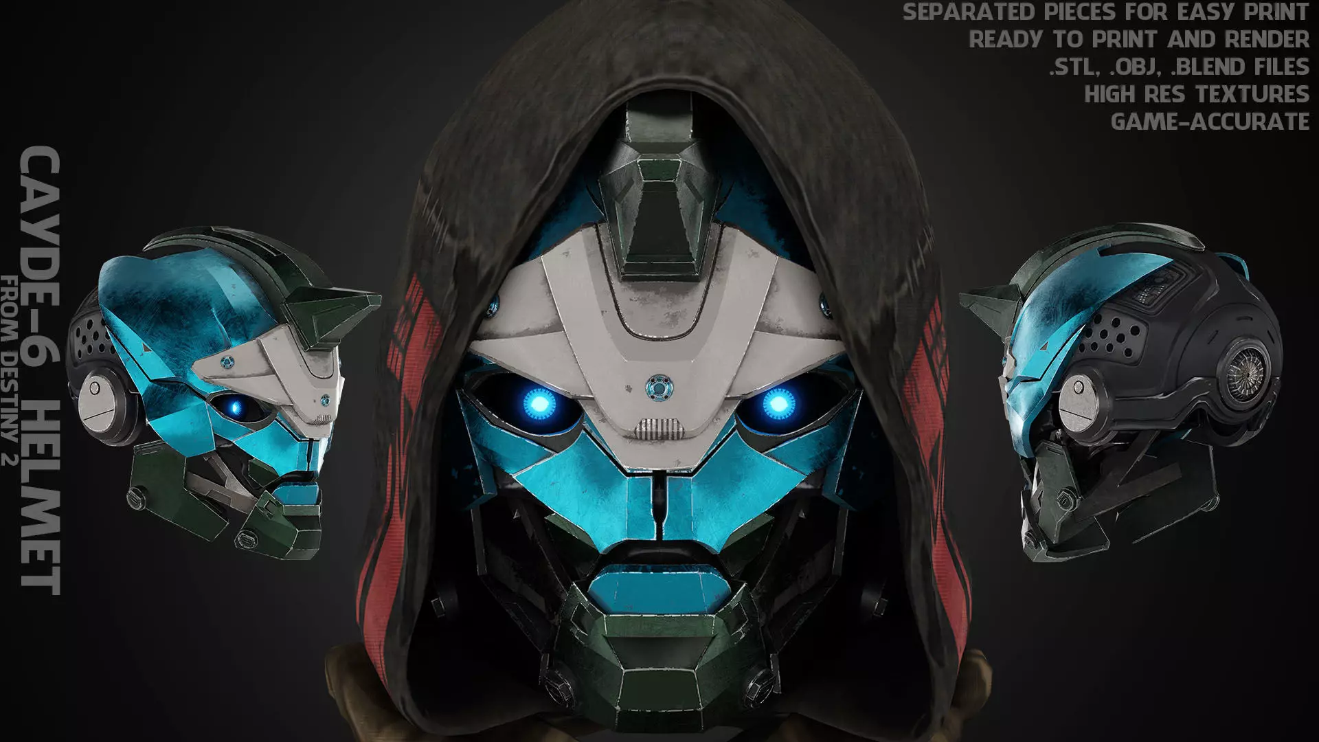 Cayde-6 Helmet from Destiny 2 ready to print and render with high resolution texture (videogame-accurate) real size