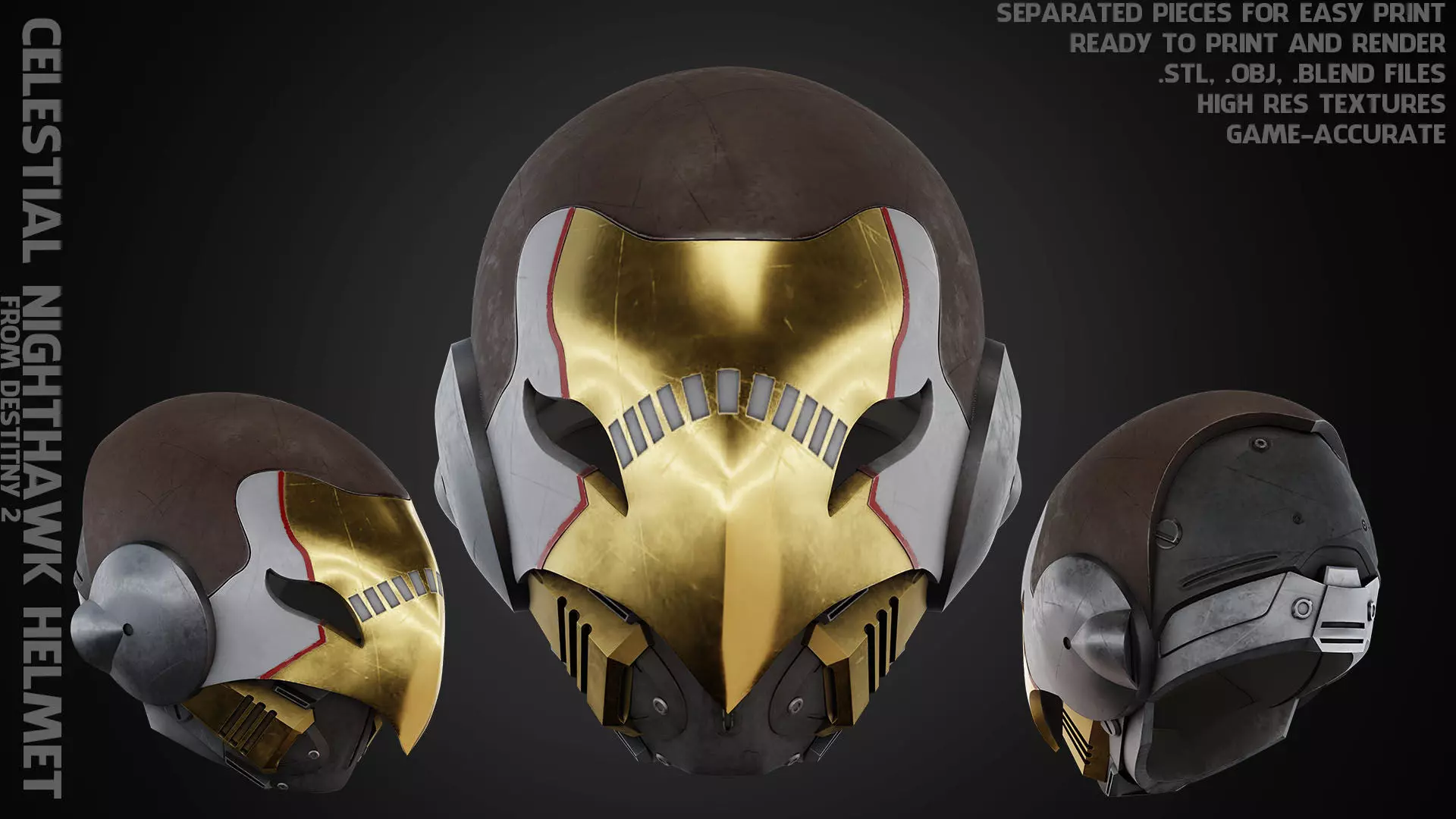 Celestial Nighthawk Helmet from Destiny 2 ready to print and render real-life scale (game accurate)
