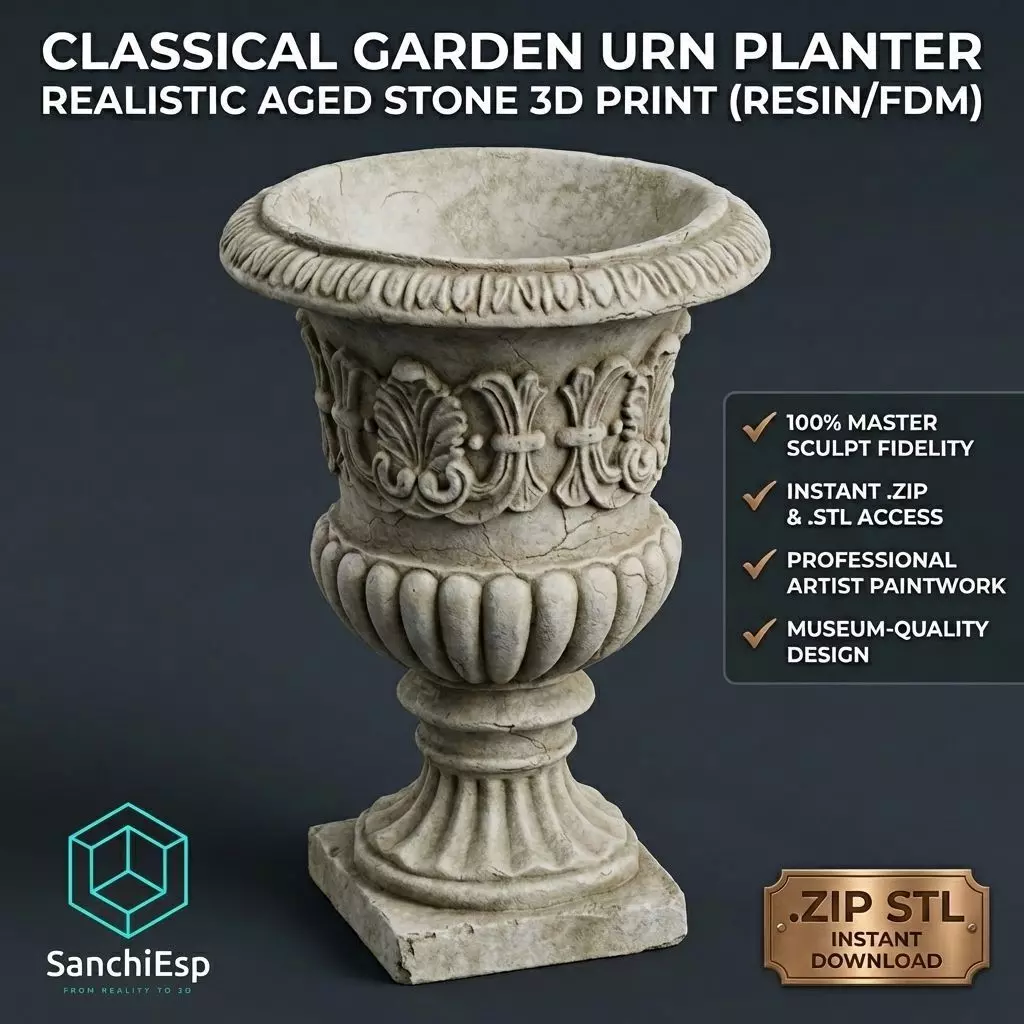 Bring timeless elegance and historical charm into your home, garden or architectural decor with this highly detailed Classical Garden Urn designed specifically for high quality 3D printing.