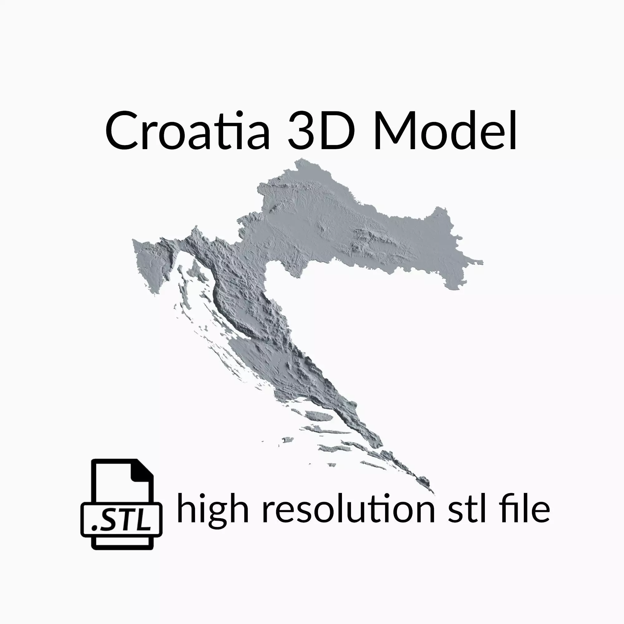 This is a topographic 3D model of the terrain of Croatia. The 3D model is in STL file format and therefore compatible with CNC routers and 3D printers. The elevation of topographical features like mountains and rivers in this 3D Map has been exaggerated to better highlight the topography of Croatia.