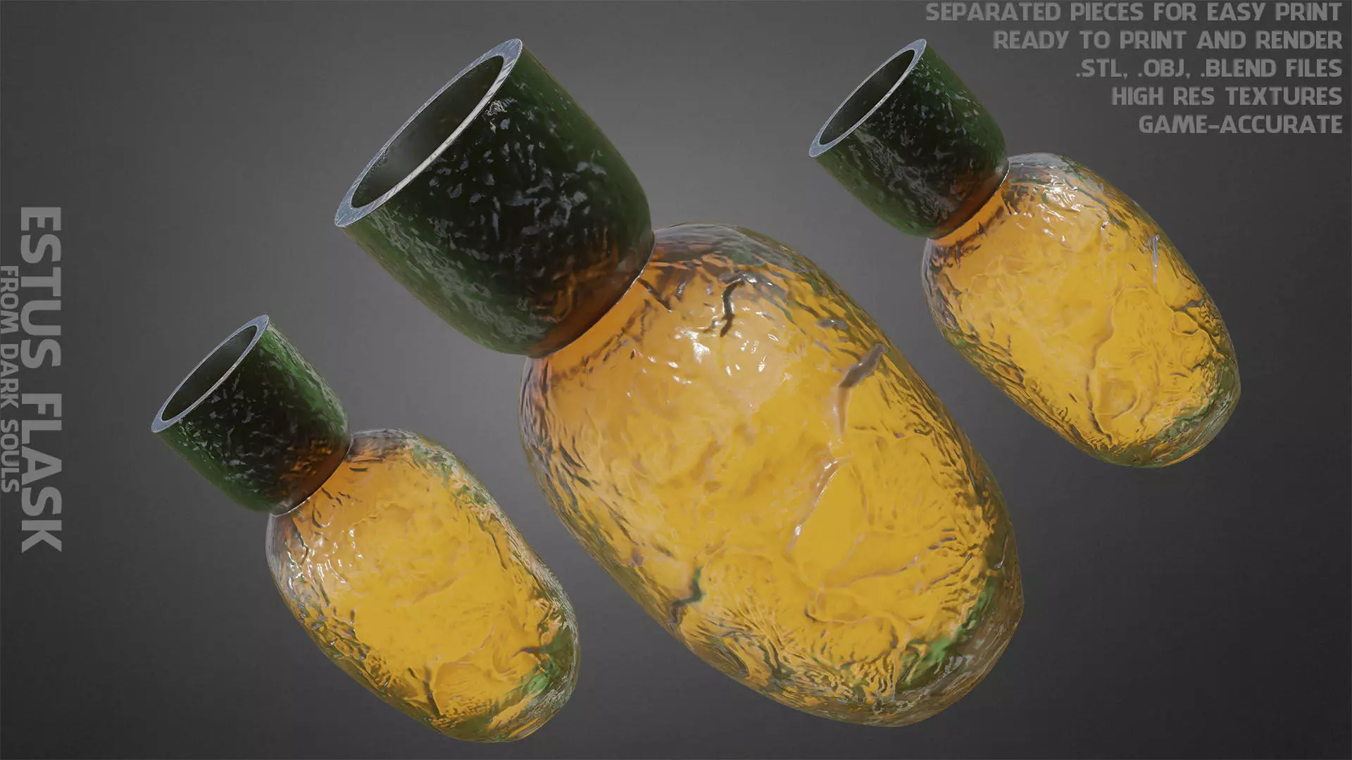 Estus Flask from Dark Souls ready to print and render (game-accurate) real size
