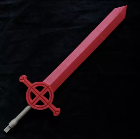 Now you, too can wield a sword made entirely from Demon's Blood! And by demon's blood we mean ABS plastic, of course, but hey, the color is the same. This 3D printed replica of Finn's Demon's Sword from Adventure Time is the perfect way to finish off your costume or cosplay.