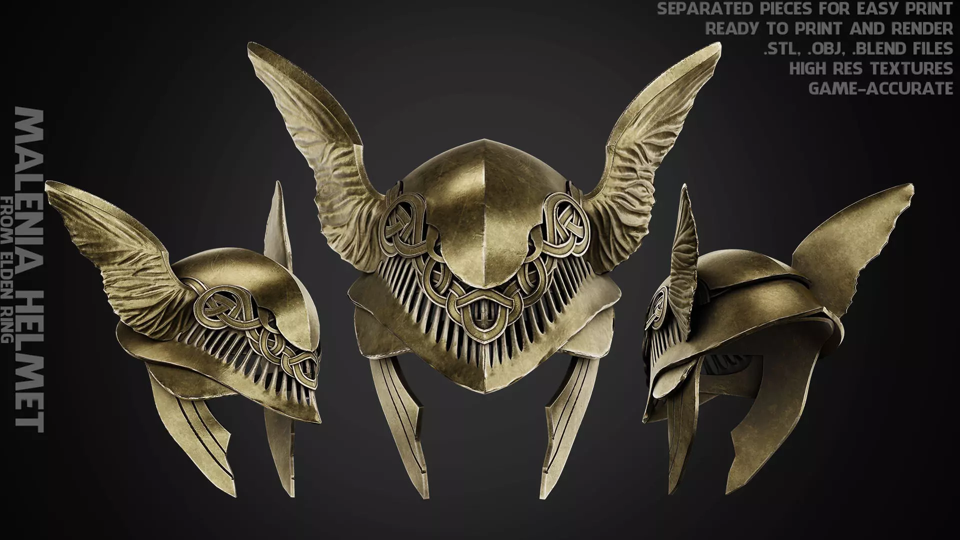 Malenia Blade of Miquella Helmet from Elden Ring ready to print and render real size
