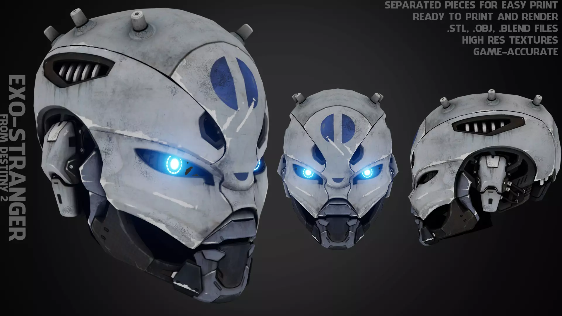 Exo-stranger Helmet from Destiny 2 ready to print and render with high resolution texture (videogame-accurate) real size