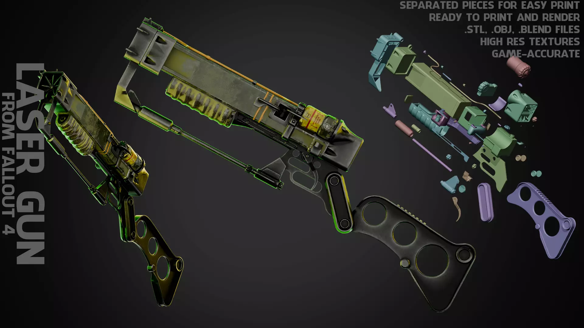 Laser Gun from Fallout 4 ready to print and render real-life scale (game accurate)