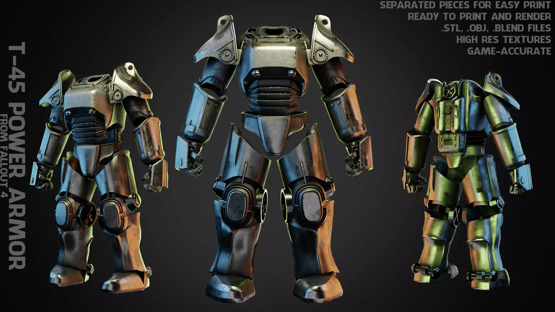 T-45 Power Armor Armor from Fallout 4 ready to print and render real-life scale (game accurate)