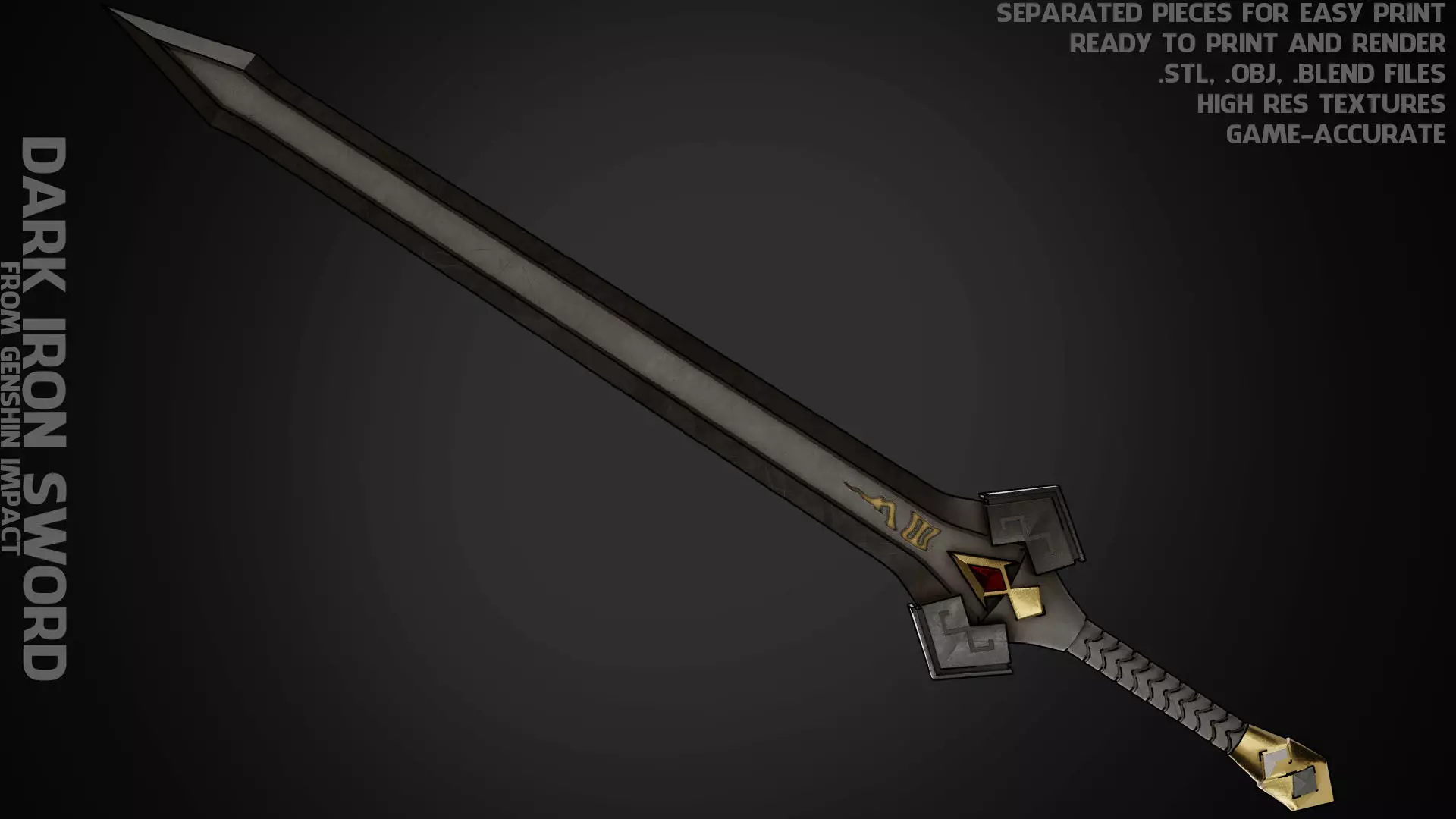 Dark Iron Sword from Genshin Impact ready to print and render (game-accurate) real size