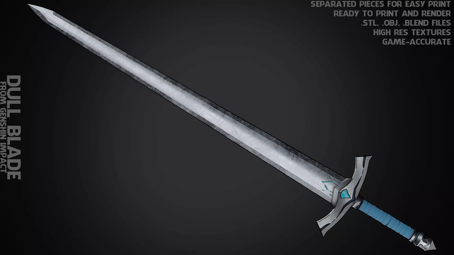 Dull Blade from Genshin Impact ready to print and render (game-accurate) real size