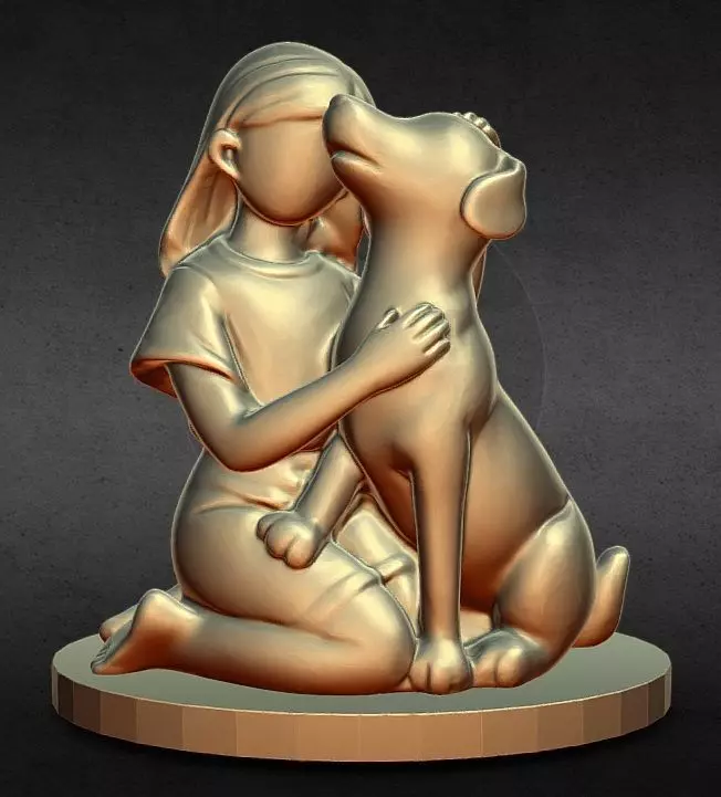 Design ConceptThis sculpture captures the heartwarming moment between a girl and her dog, showcasing themes of love and companionship. It portrays the deep bond and mutual affection shared between humans and their pets, making it a perfect piece for anyone who cherishes animals.