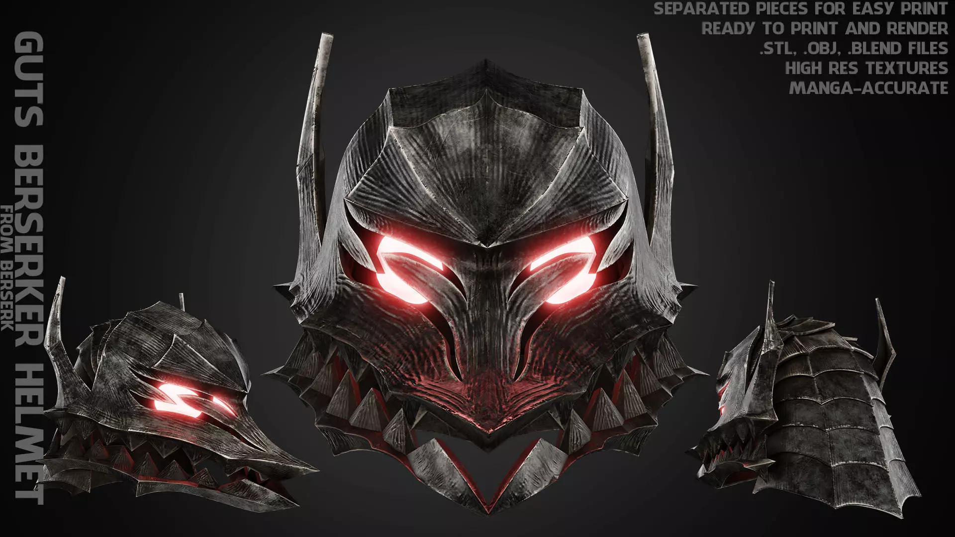 Guts Berserker Helmet from Berserk Manga ready to print and render (manga-accurate) real size