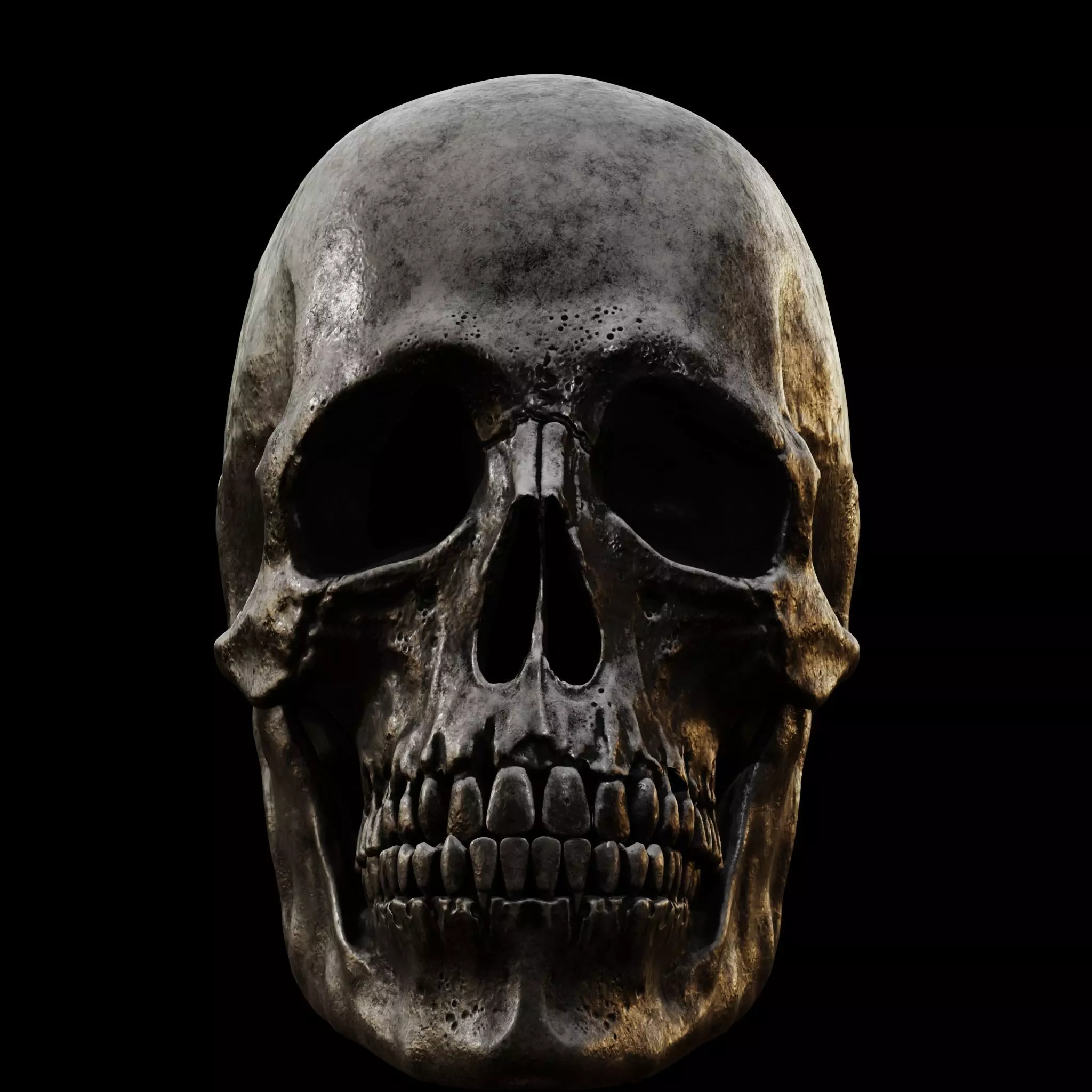**This is a digital STL file - print-ready and high quality.**Photorealistic black skull with detailed anatomical structure, forged in fire and shadow. Perfect as a mannequin base for displaying my mask models or as a standalone top-tier decoration.