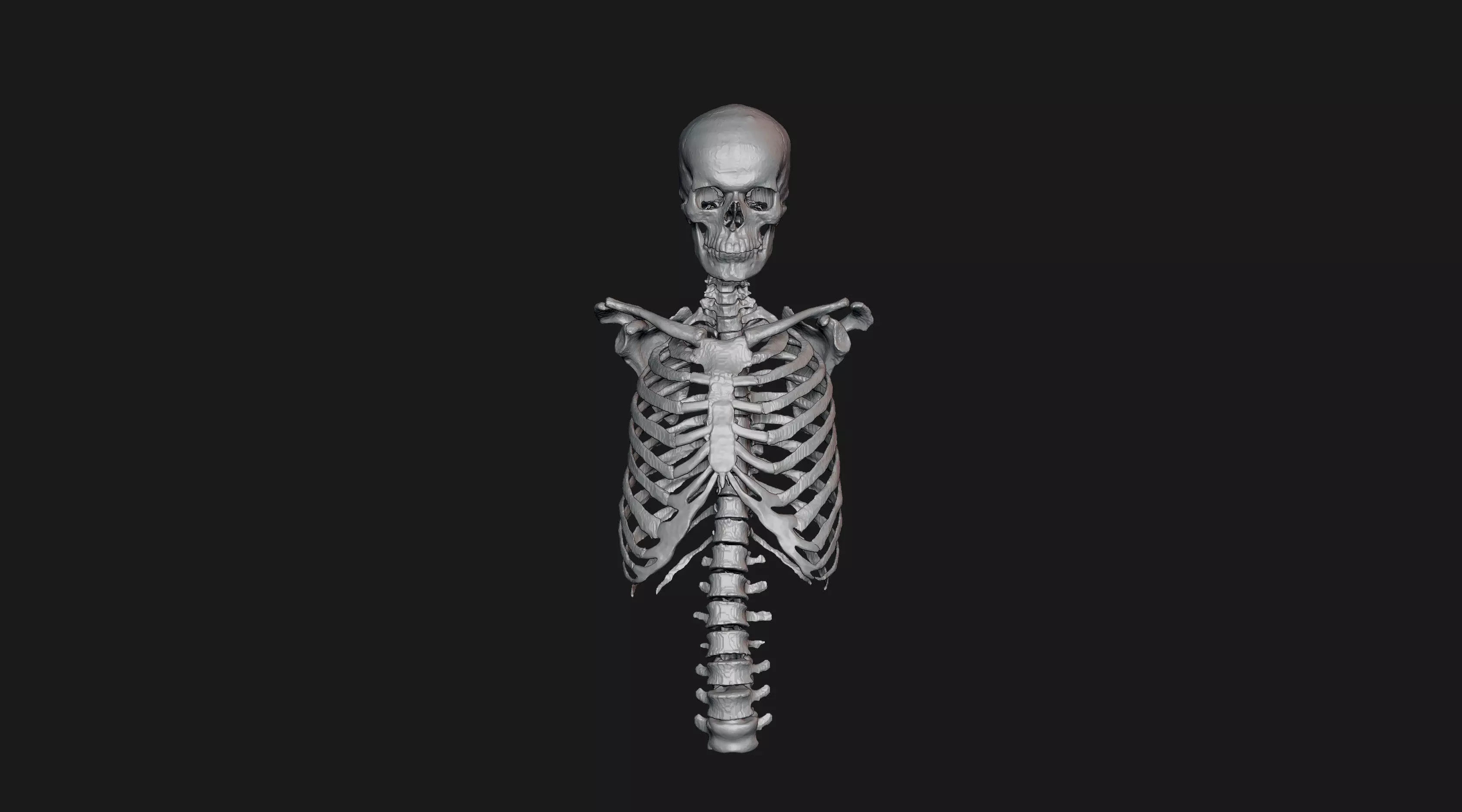 High-resolution details of skull, vertebrae, ribs, and upper torso