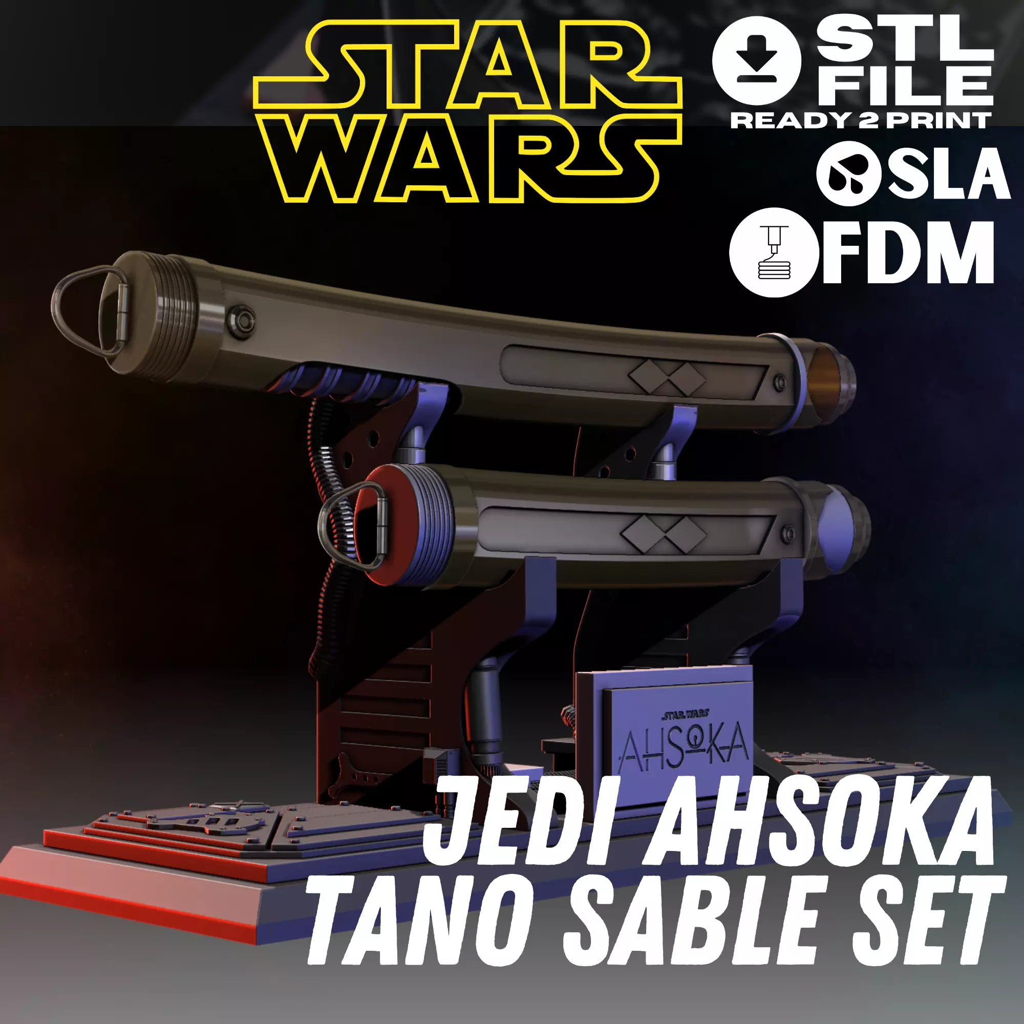 Discover the Elegance of Ahsoka Tano's Lightsabers in 3DStar Wars lovers and 3D printing enthusiasts, get ready for an epic experience! I proudly present to you my latest creation: Jedi Ahsoka Tano's iconic lightsabers, complete with a custom display base! Whether you want to adorn your space with galaxy-inspired art or add a unique touch to your Star Wars collection, this model is perfect for you.