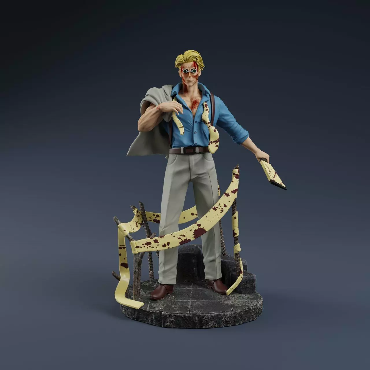 The Nanami Kento figurine toy is a must-have for any fan of Jujutsu Kaisen. Capturing the essence of the stoic sorcerer with remarkable detail, this figurine showcases Nanami after a fight on the street. With his signature blue button-up long-sleeve shirt, short blonde hair, and circular glasses, every aspect of his appearance is faithfully recreated.